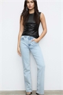 Неэластичный деним: светло-голубой оттенок Основной материал: 99% хлопок, 1% эластан.