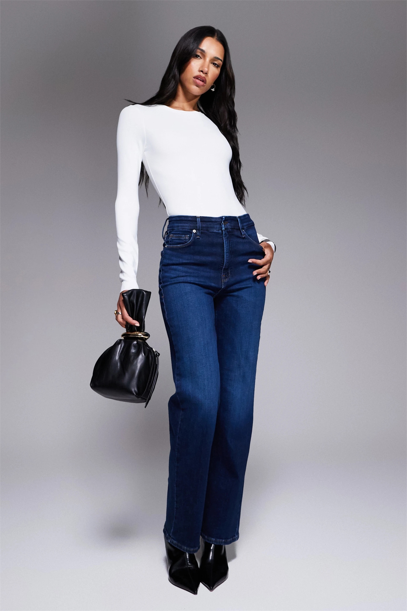 Мягкий и легкий деним: оттенок средне-синего цвета. Добавлен эластан для удобства. Основной состав: 93% хлопок, 6% полиэстер, 1% эластан (Lycra).