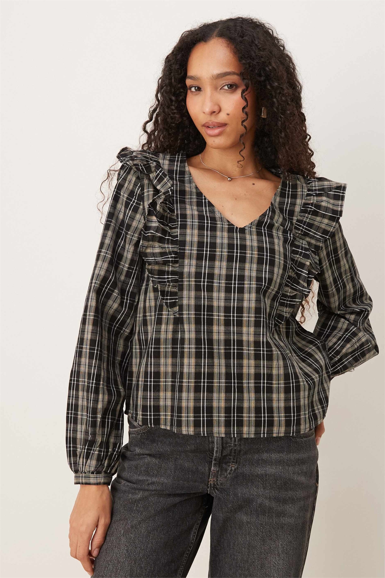 Блузка с V-образным вырезом и оборками