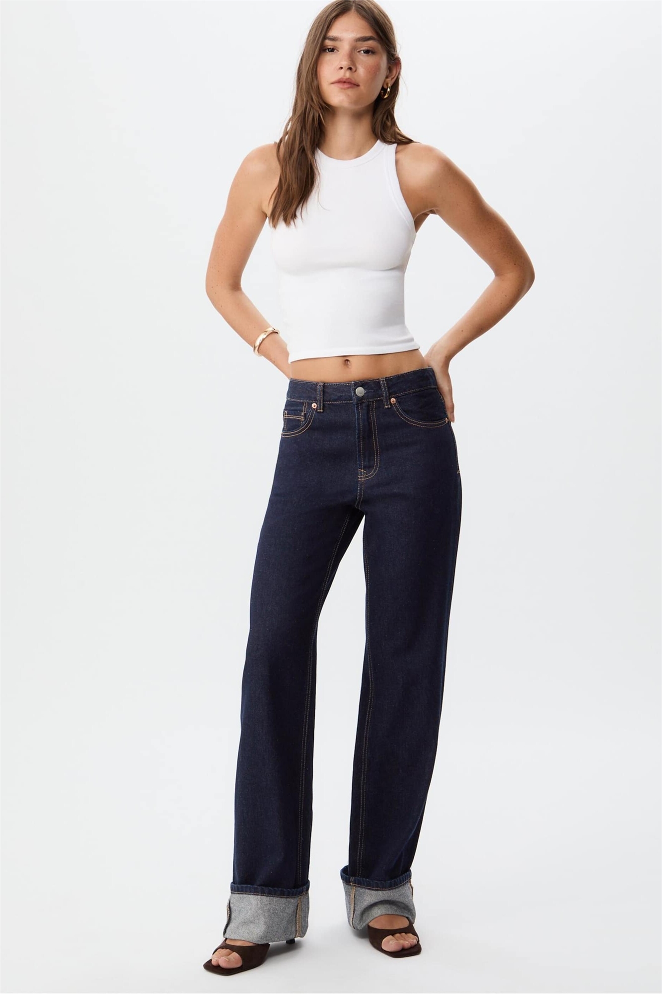 Неэластичный деним: темно-синяя стирка Основной материал: 100% хлопок.