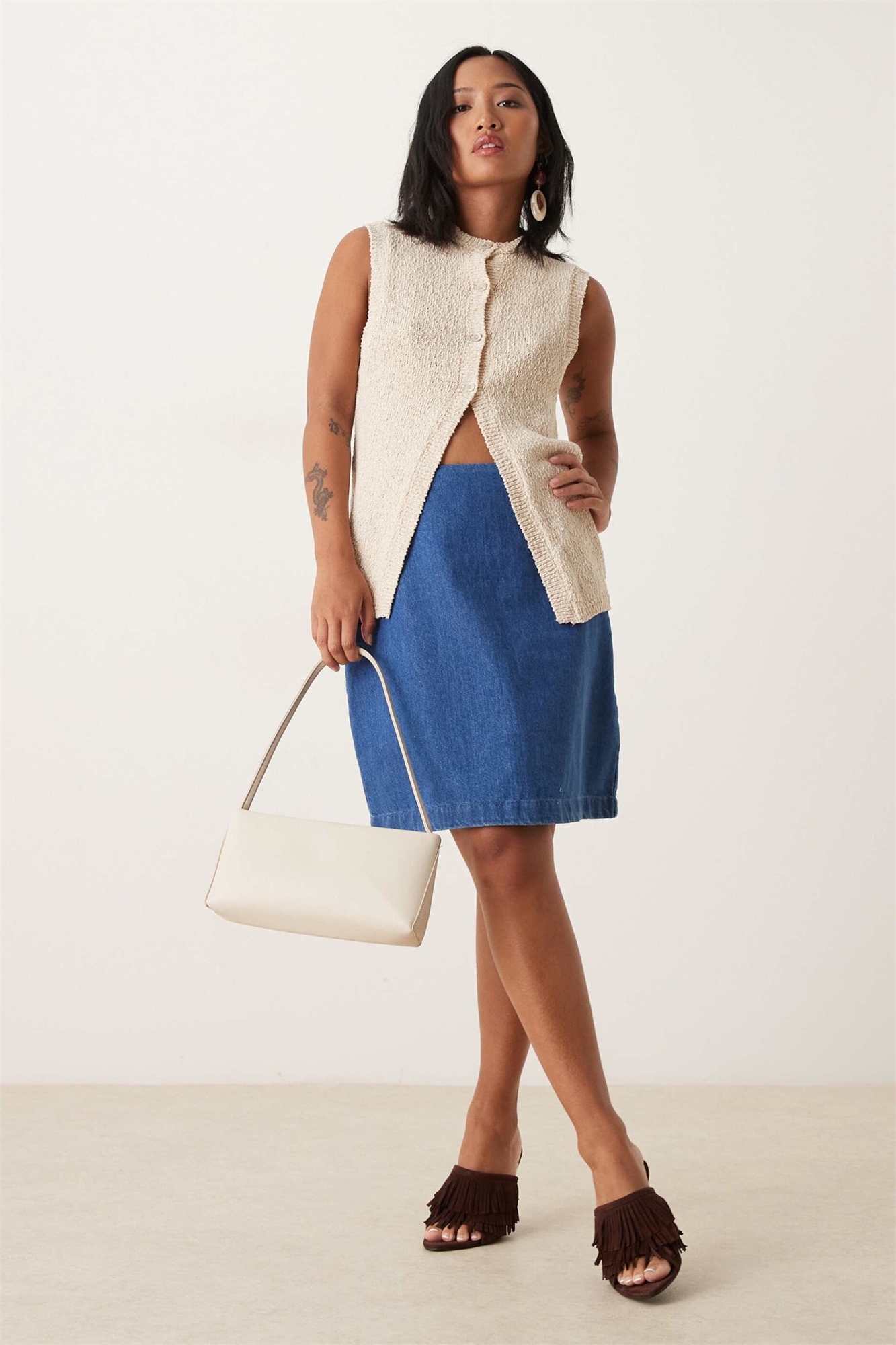 Рост модели: 155,5 см / 5 футов 1 дюйм. На модели одета одежда размера UK 6.