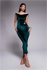 Бархатное платье средней длины с открытыми плечами, вырезами и отделкой