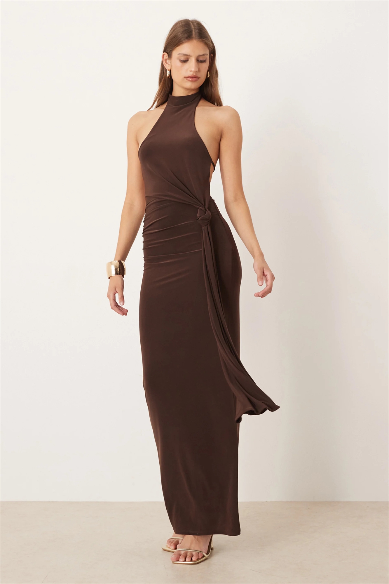 Макси-платье с завязкой спереди и капюшоном