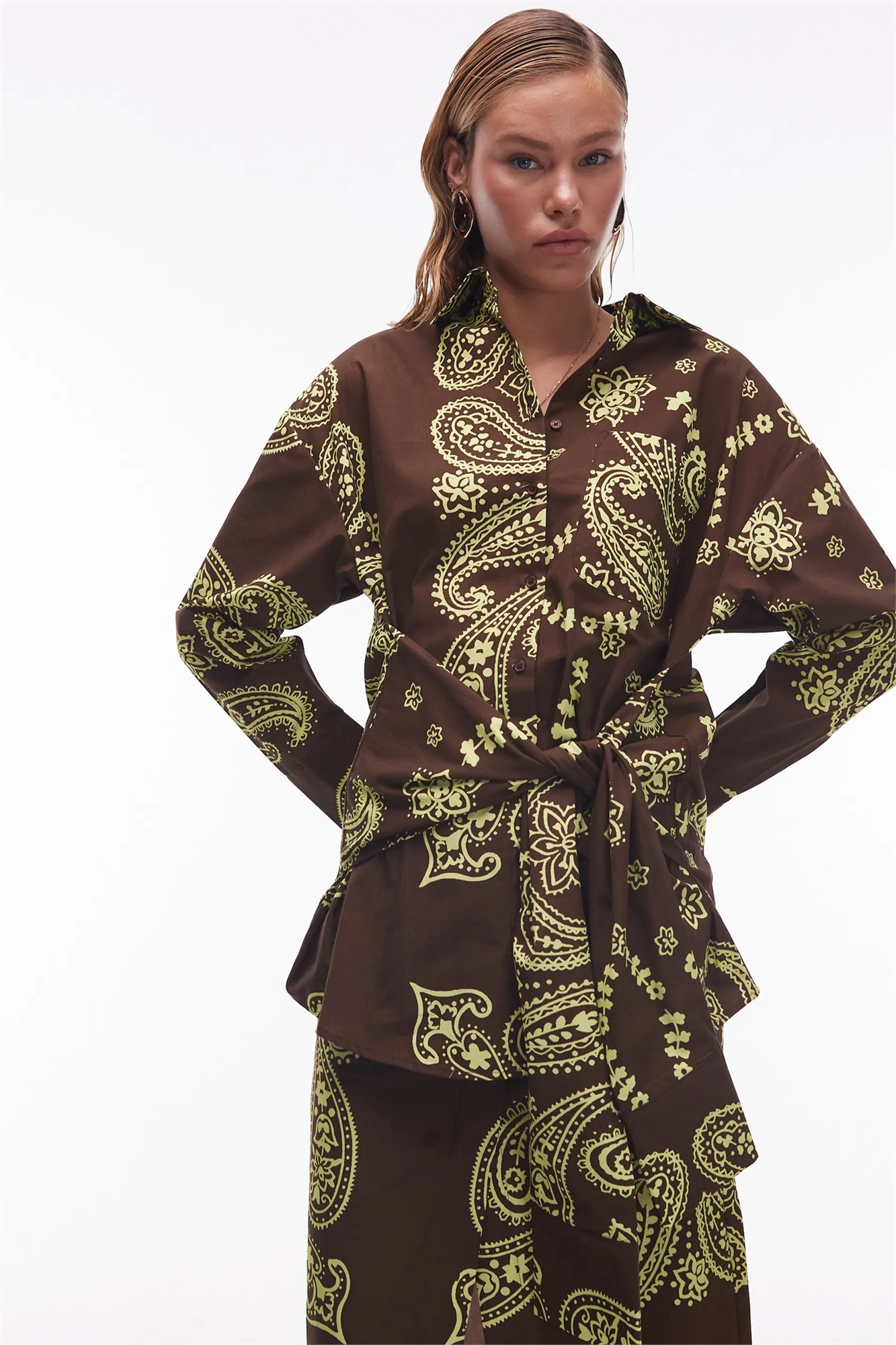 Рубашка из поплина с запахом и завязками на талии