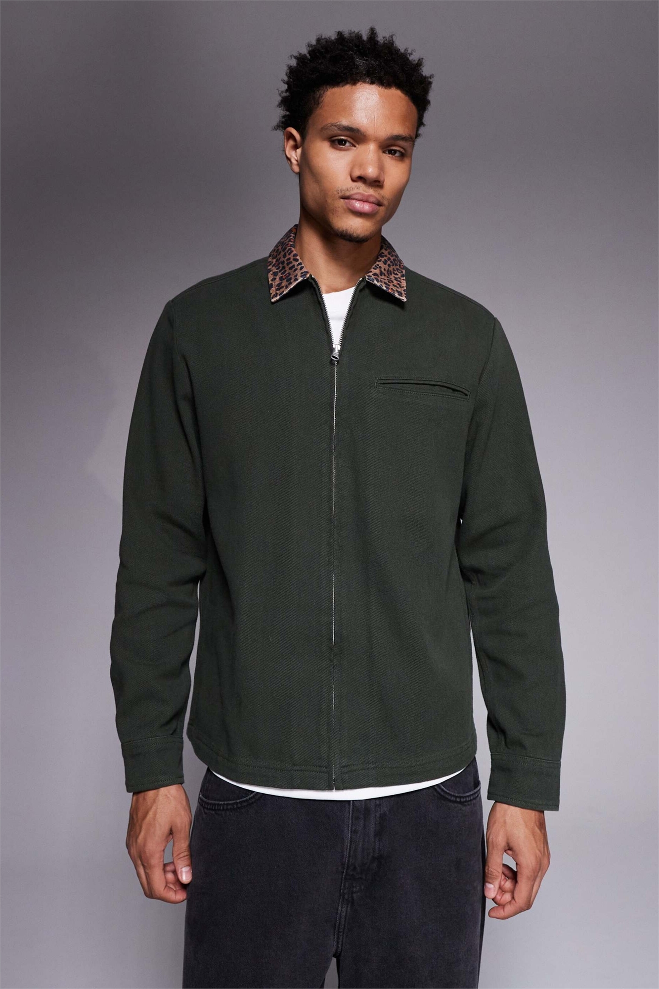 Рубашка свободного кроя из твила с воротником с контрастным леопардовым принтом