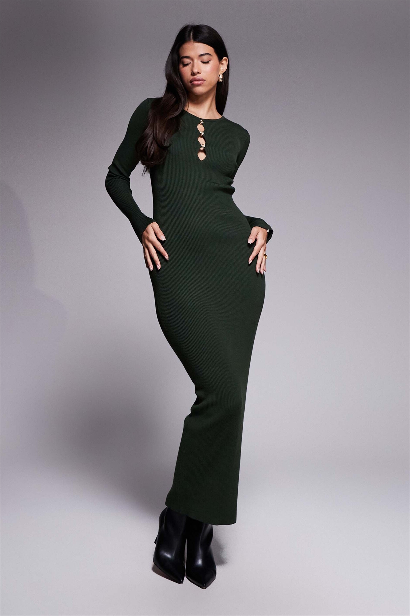 Длинное трикотажное платье-макси с эксклюзивным вырезом