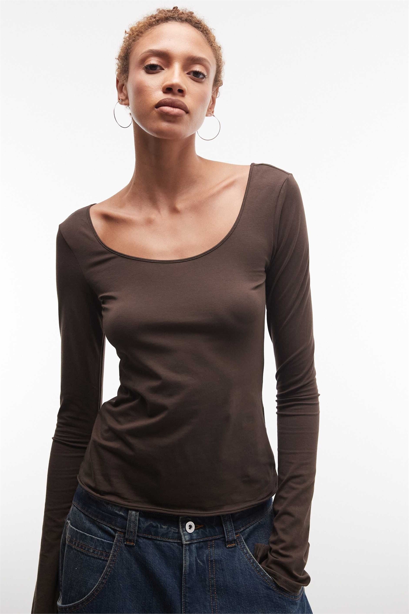 Футболка с длинными рукавами, облегающего кроя и круглым вырезом