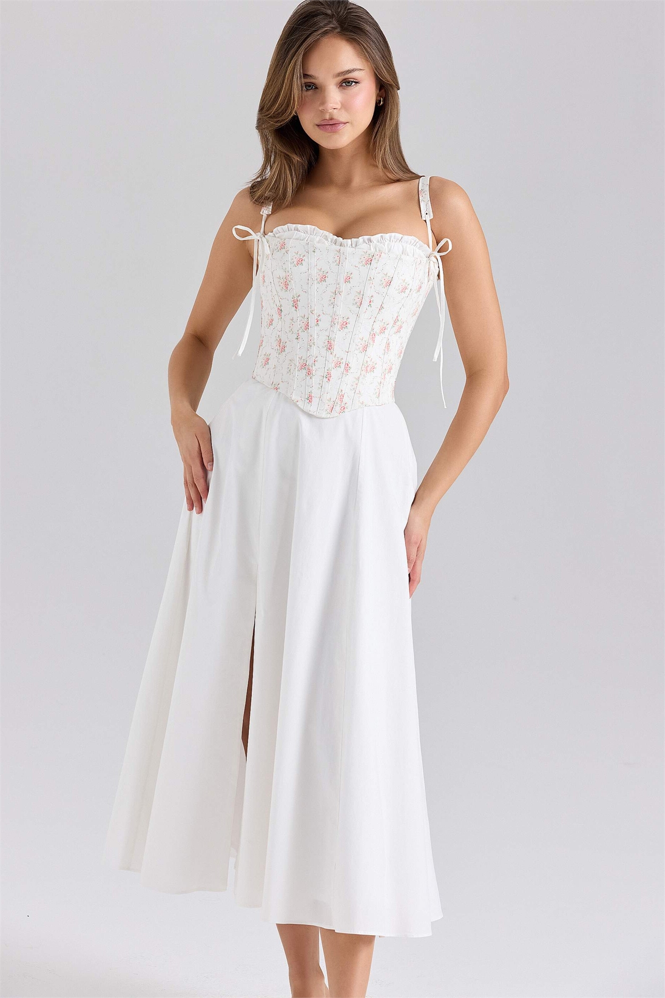 Хлопковое платье-миди средней длины с отстегивающимся корсетом и принтом в виде роз от Clarabelle