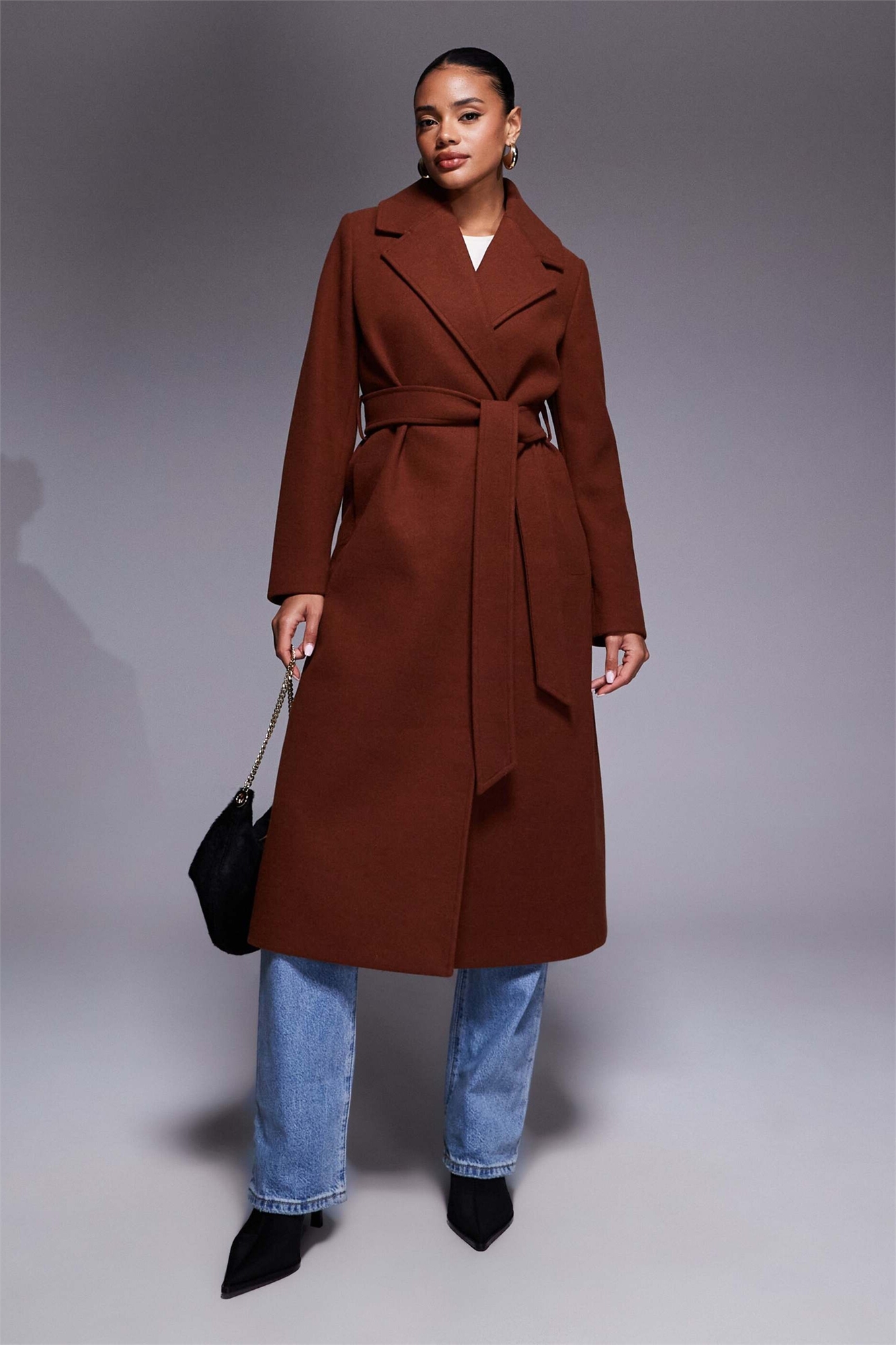 Формальное пальто из шерстяной смеси с поясом и длинным силуэтом, цвет ржавчины
