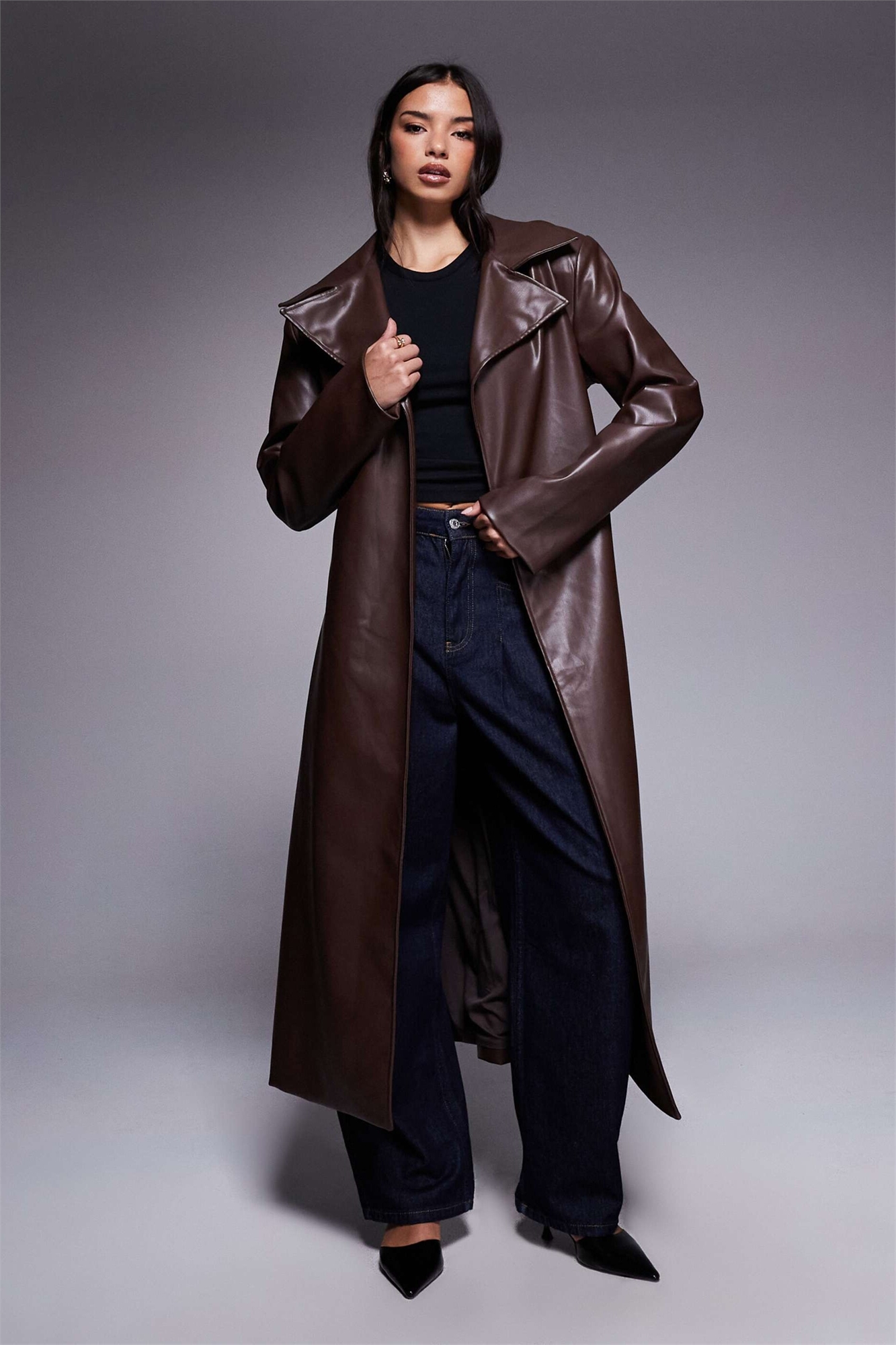 Макси-пальто Anushka из искусственной кожи с плечевыми накладками и зауженной талией