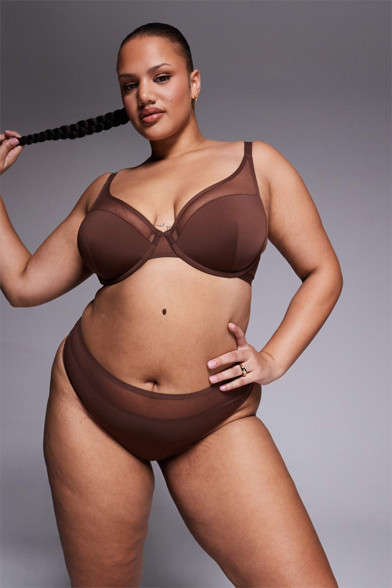 ASOS DESIGN Curve Ella — стринги из микрофибры с высокой талией и высоким вырезом, с сетчатыми вставками