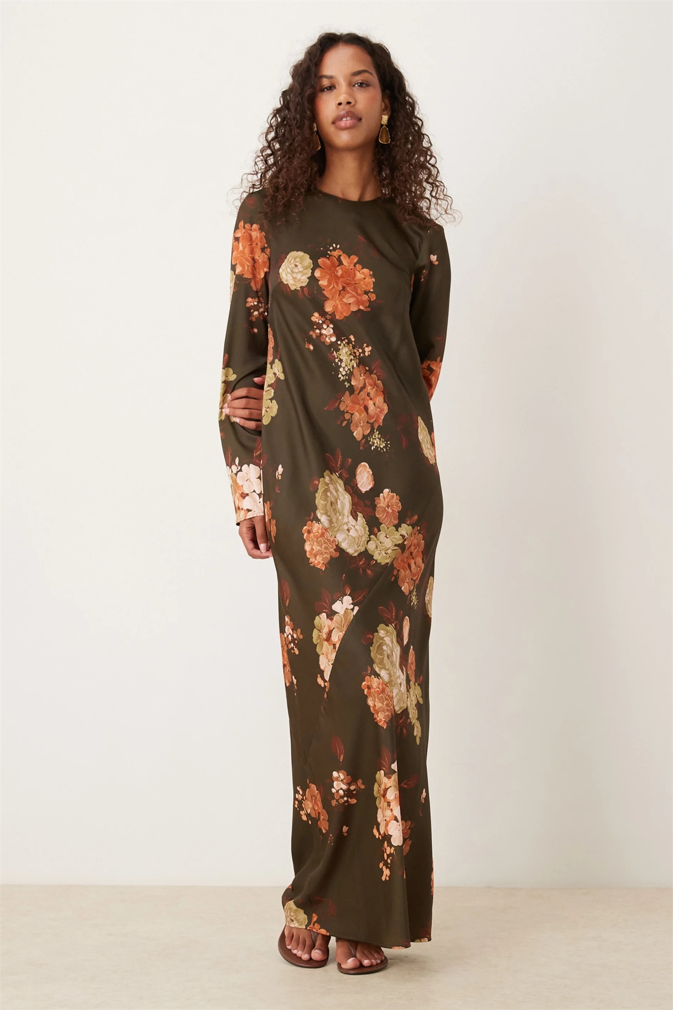 Макси-платье-комбинация из матового сатина с швами