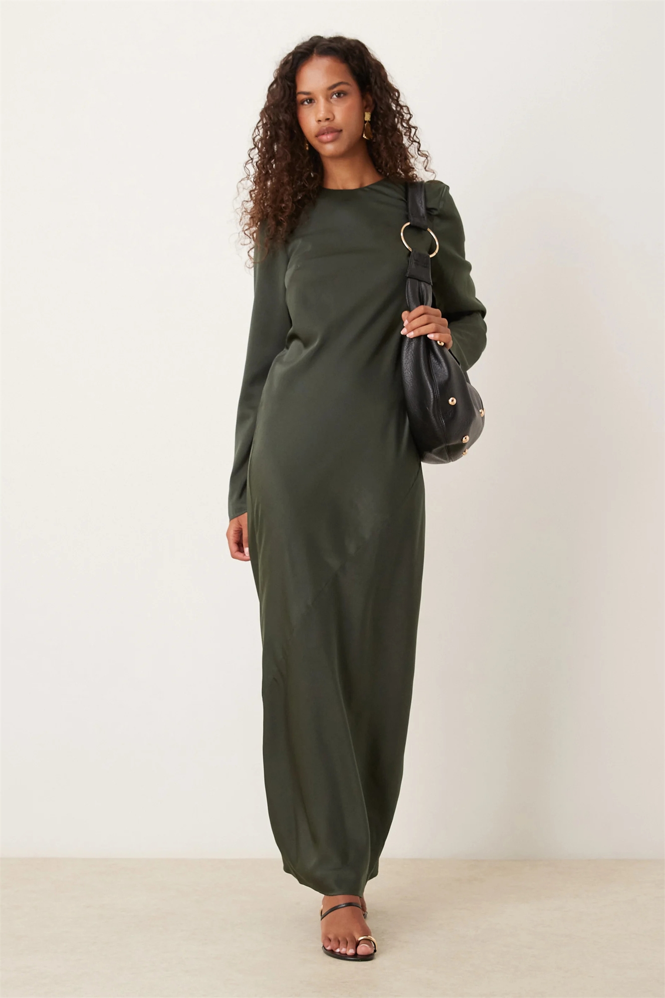 Макси-платье-комбинация из матового сатина с швами