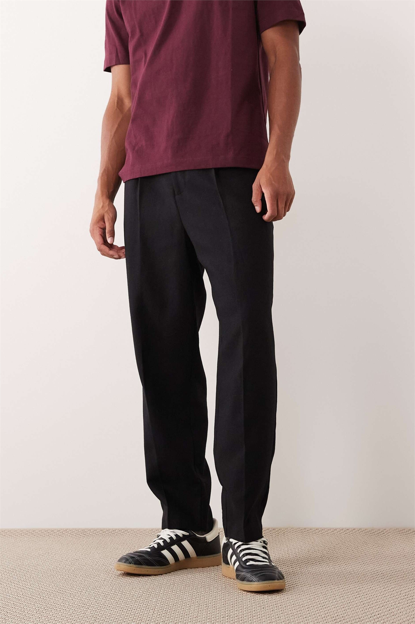 Стильные брюки свободного кроя с зауженными штанинами из смесовой ткани с добавлением шерсти