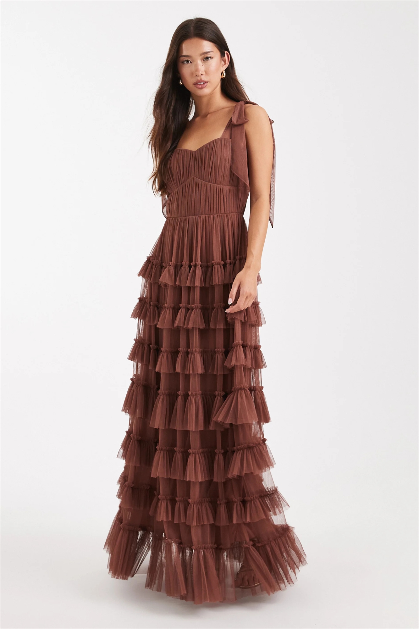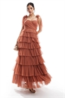 Макси-платье с баской на плечах и бантиком из тюля «Офелия»