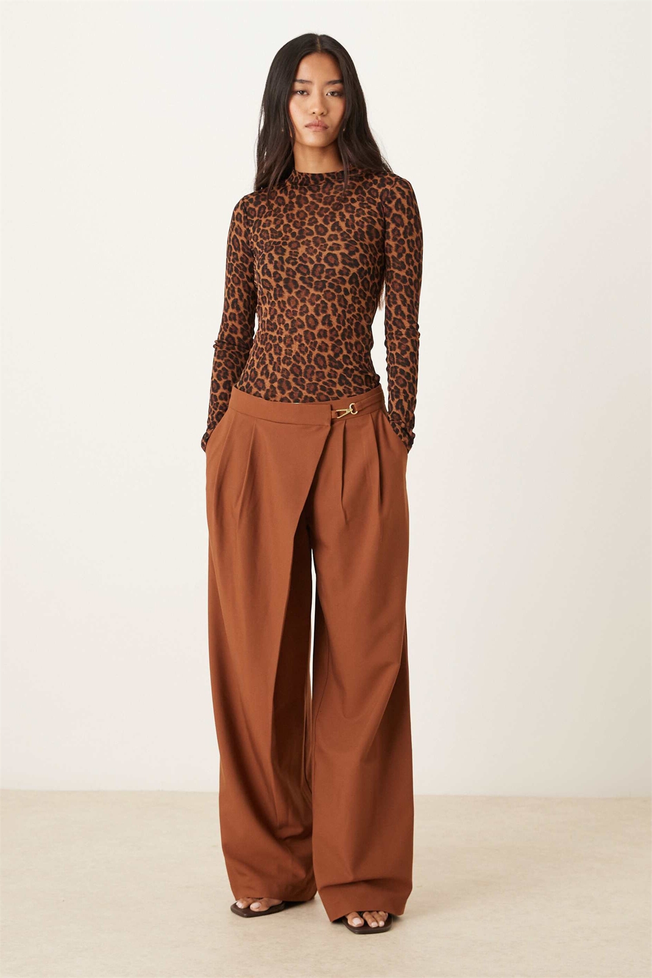 Брюки-кюлоты асимметричного кроя с широкими брючинами и пряжкой