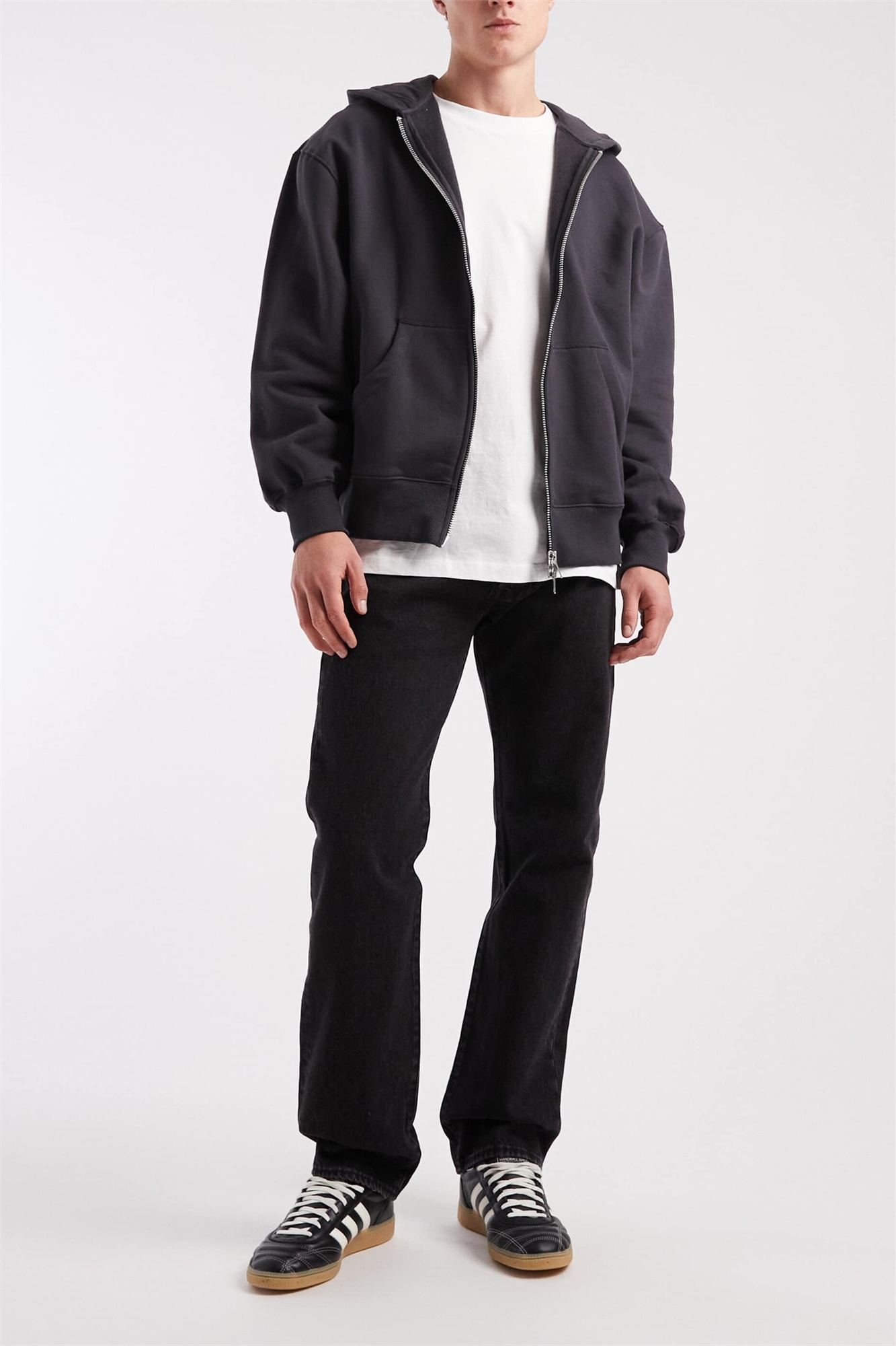 Неэластичный деним: черная стирка Основной материал: 100% хлопок.