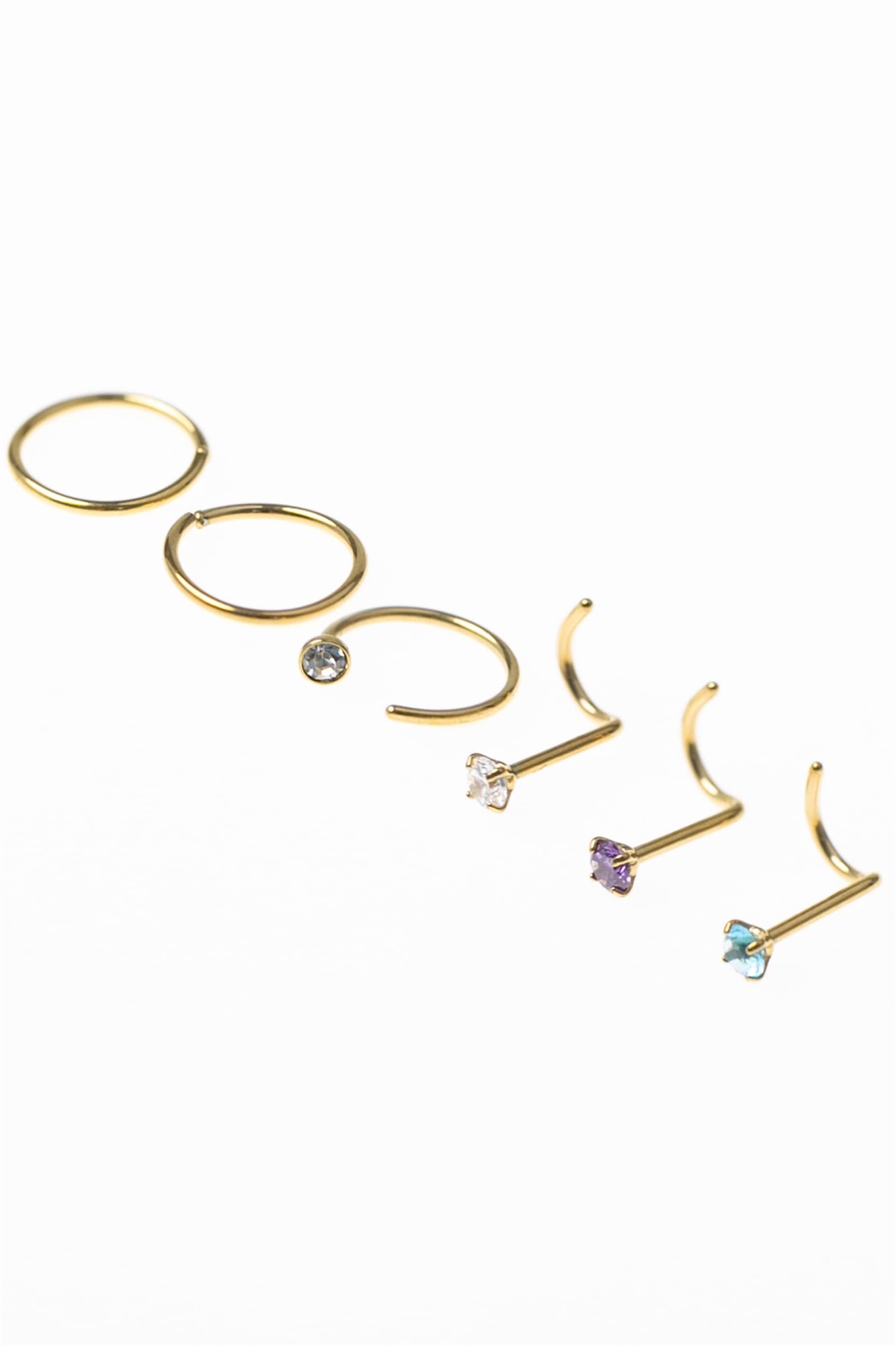 Набор из 6 позолоченных сережек-гвоздиков для носа из хирургической стали с пастельными стразами