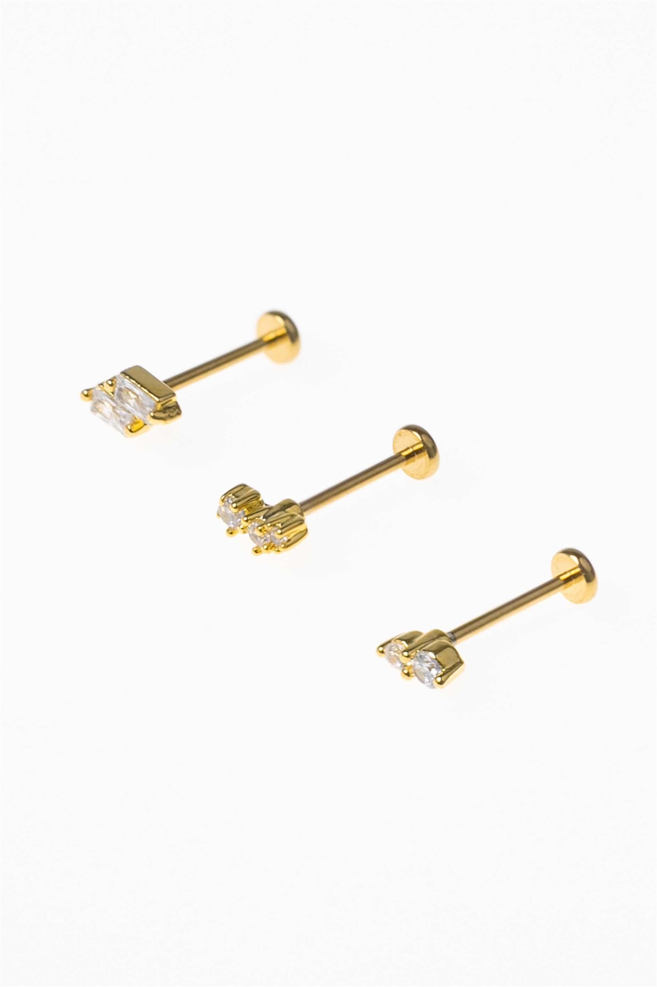 Позолоченные серьги из хирургической стали с двойным багетом и плоской застежкой, набор из 3 штук