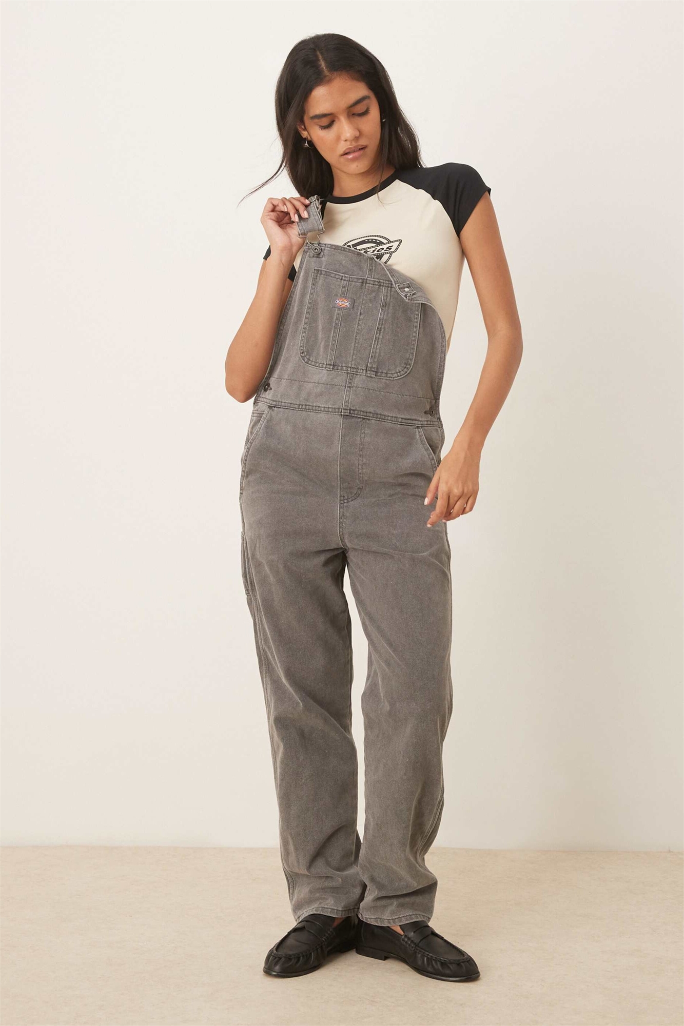 Неэластичный деним: темно-серый цвет Основной материал: 100% хлопок.