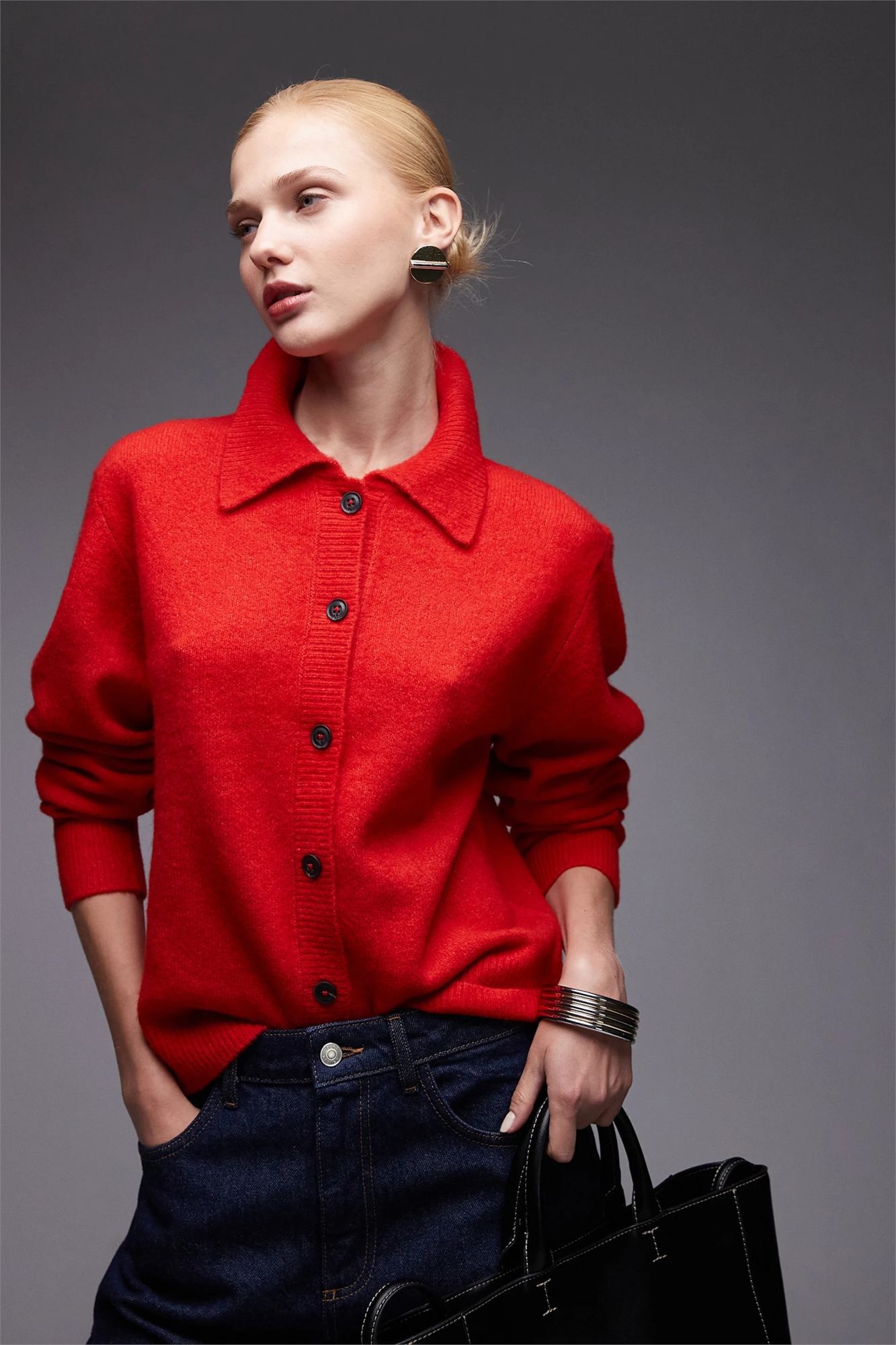 Вязаный кардиган с воротником