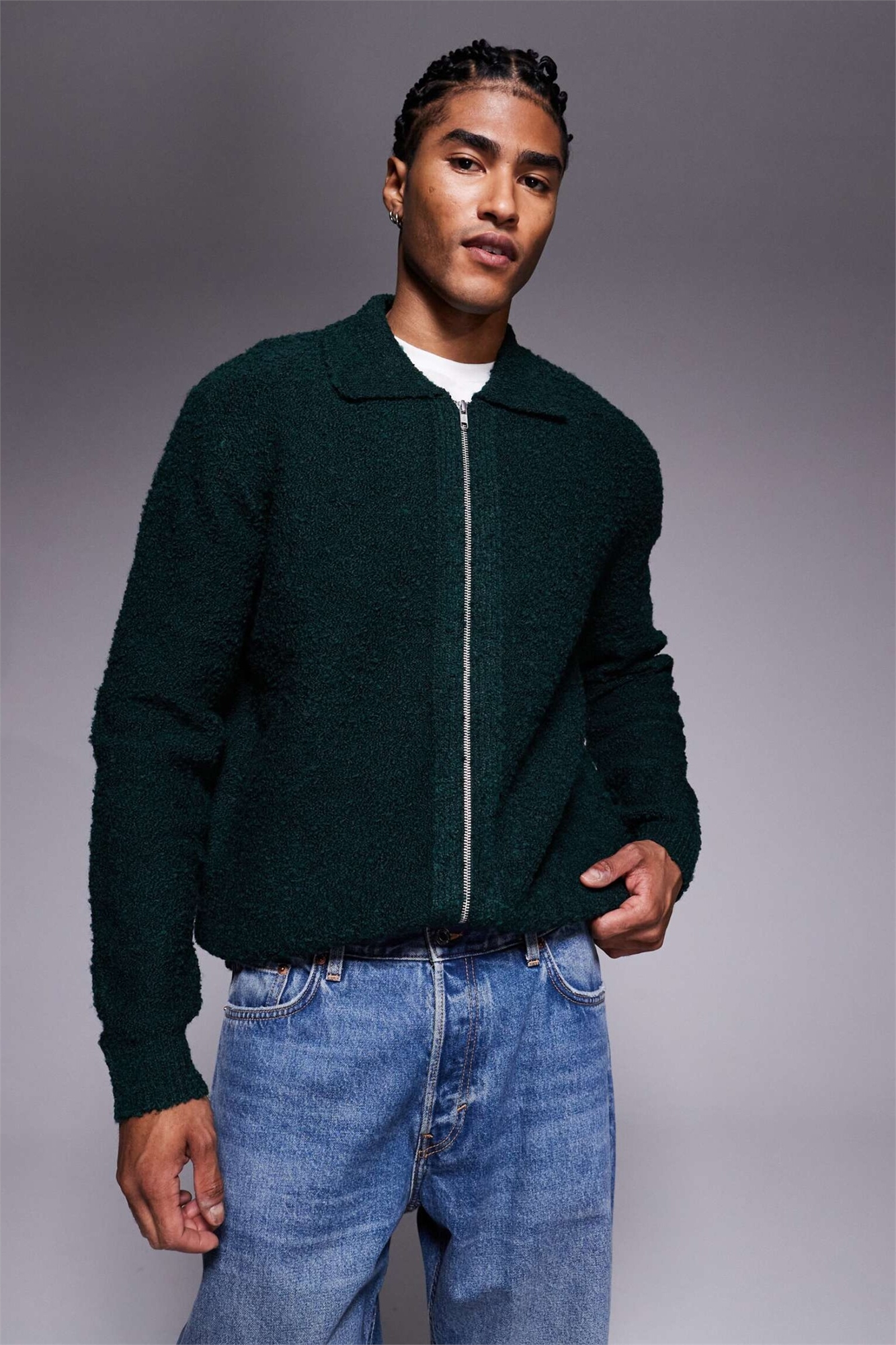 Кардиган из мягкого трикотажа с букле-текстурой и застежкой-молнией