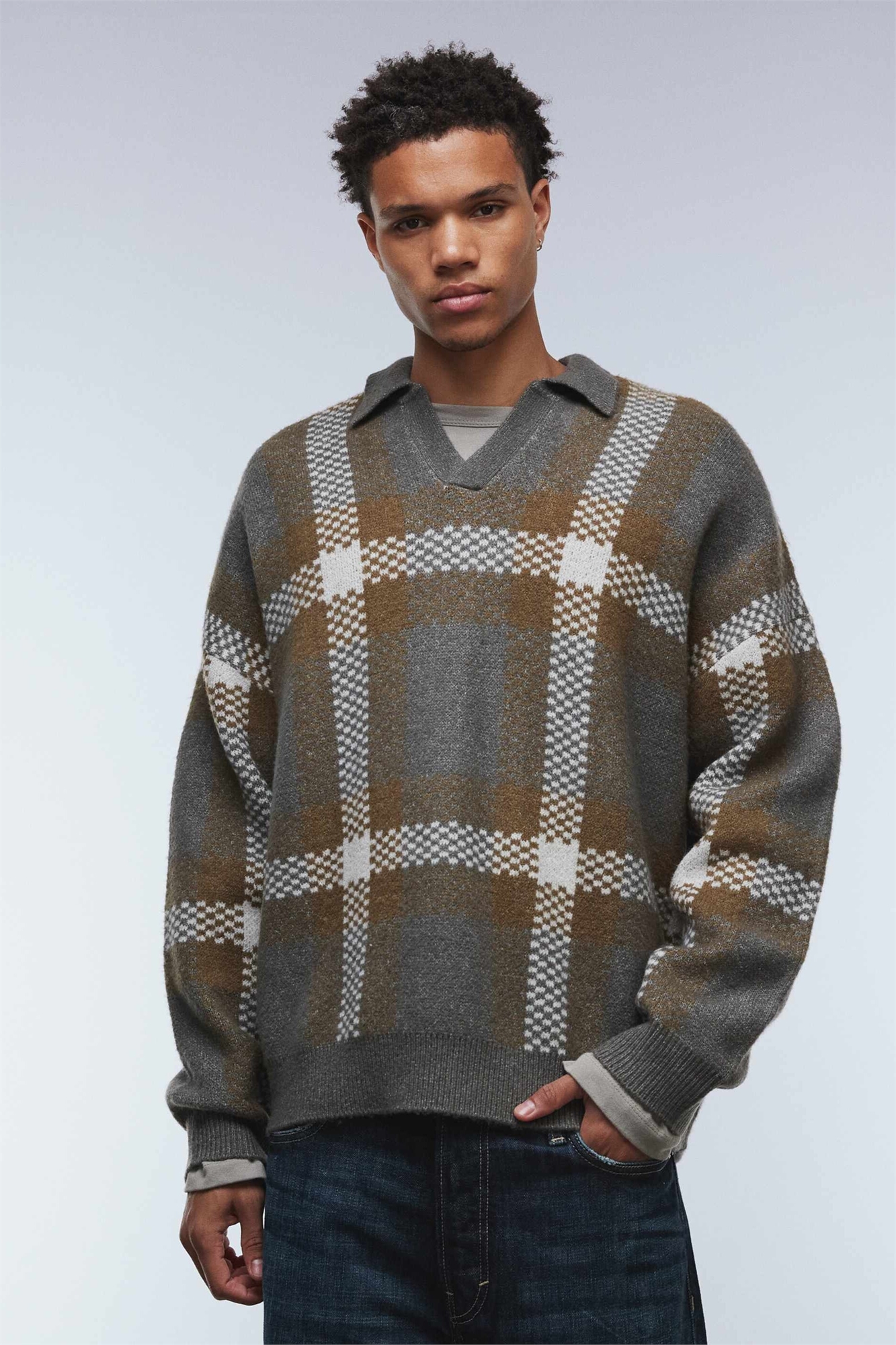 Свитер-поло с вырезом на шее из толстой вязки