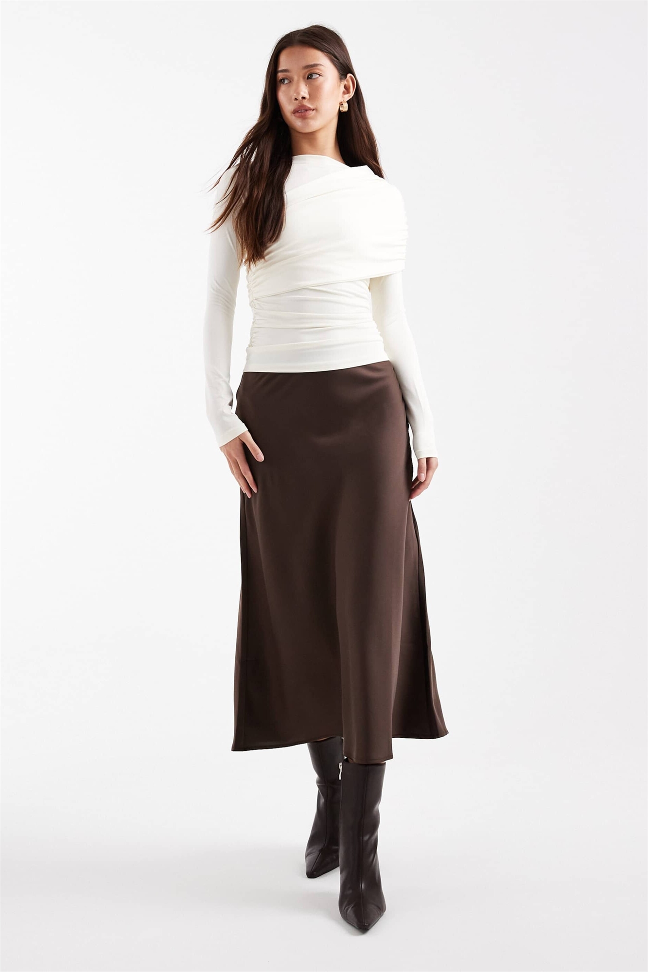 Атласная юбка средней длины