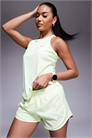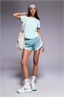 Спортивная одежда: гладкая и эластичная ткань. Использует технологию Nike Dri-FIT. Отводит пот от кожи, а затем вытягивает его из ткани, чтобы ускорить испарение. Сохраняет прохладу и сухость во время занятий спортом. Основной материал: 100% полиэстер.