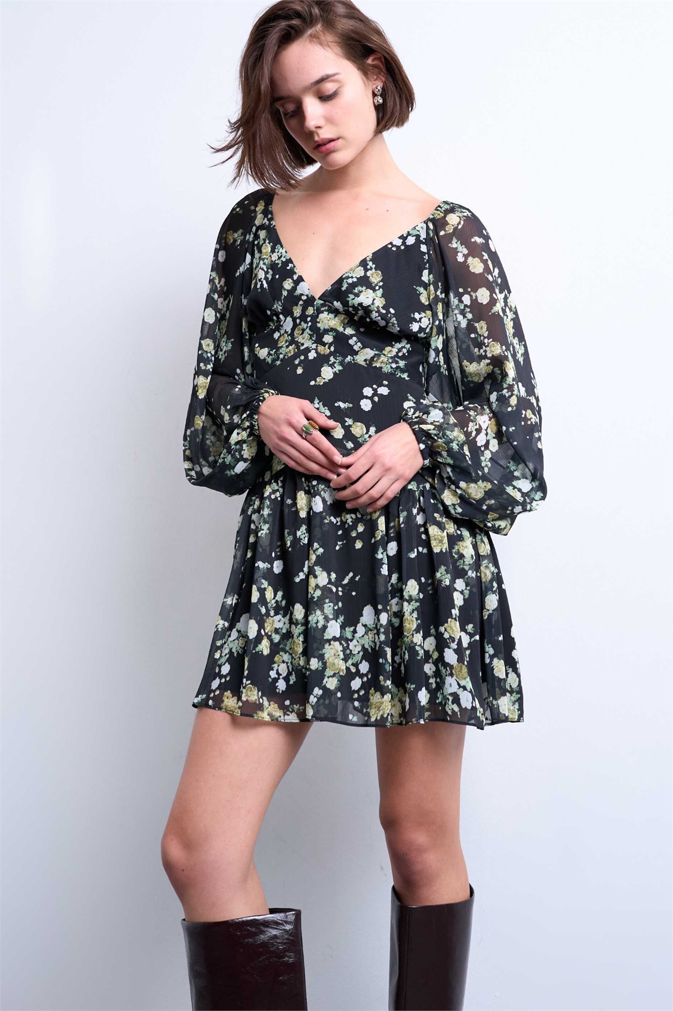 Мини-платье в стиле «ти» с рукавами-буфантами