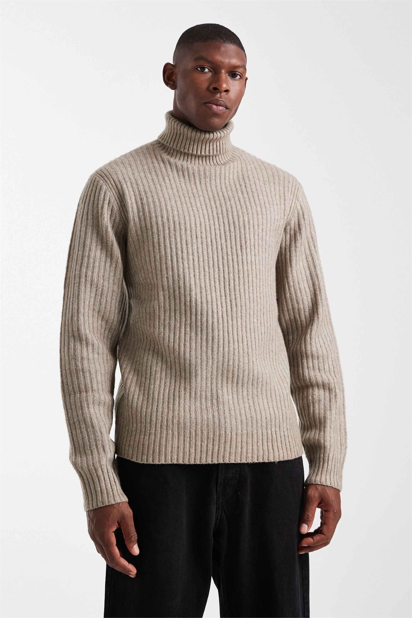 Свитер с высоким воротником и косой вязкой