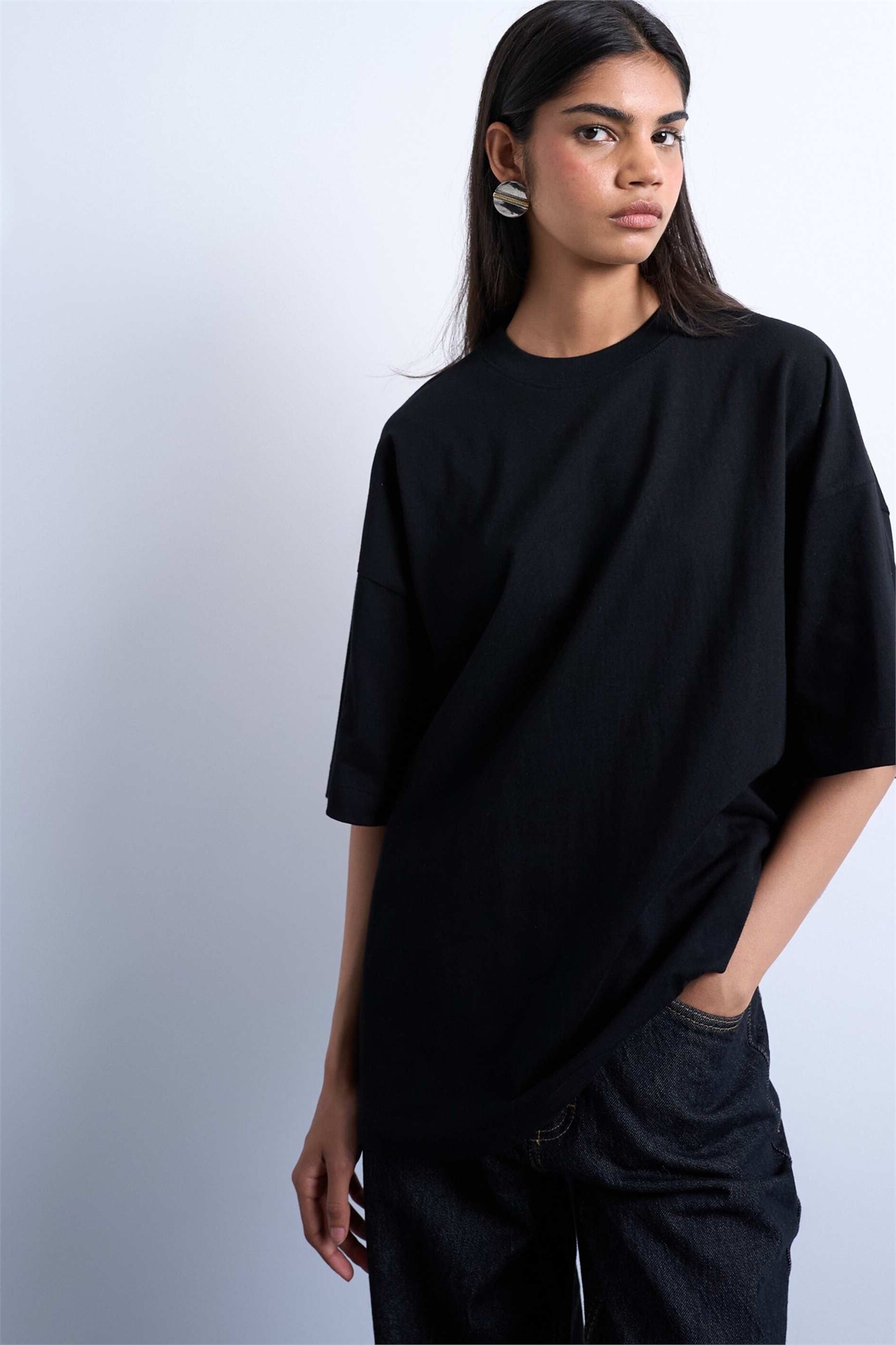 Футболка с заниженными плечами свободного кроя