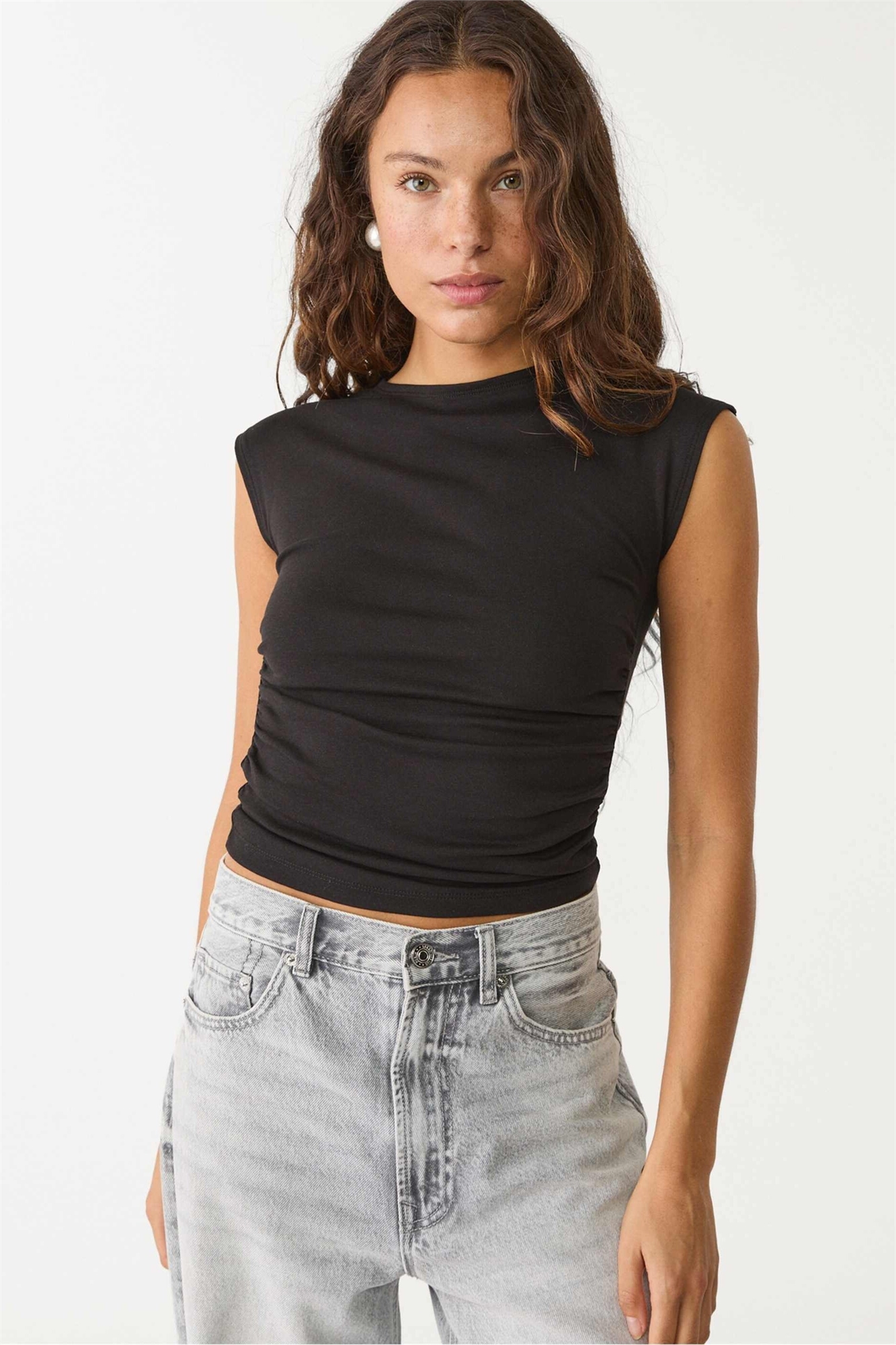 Простая облегающая футболка со сборками