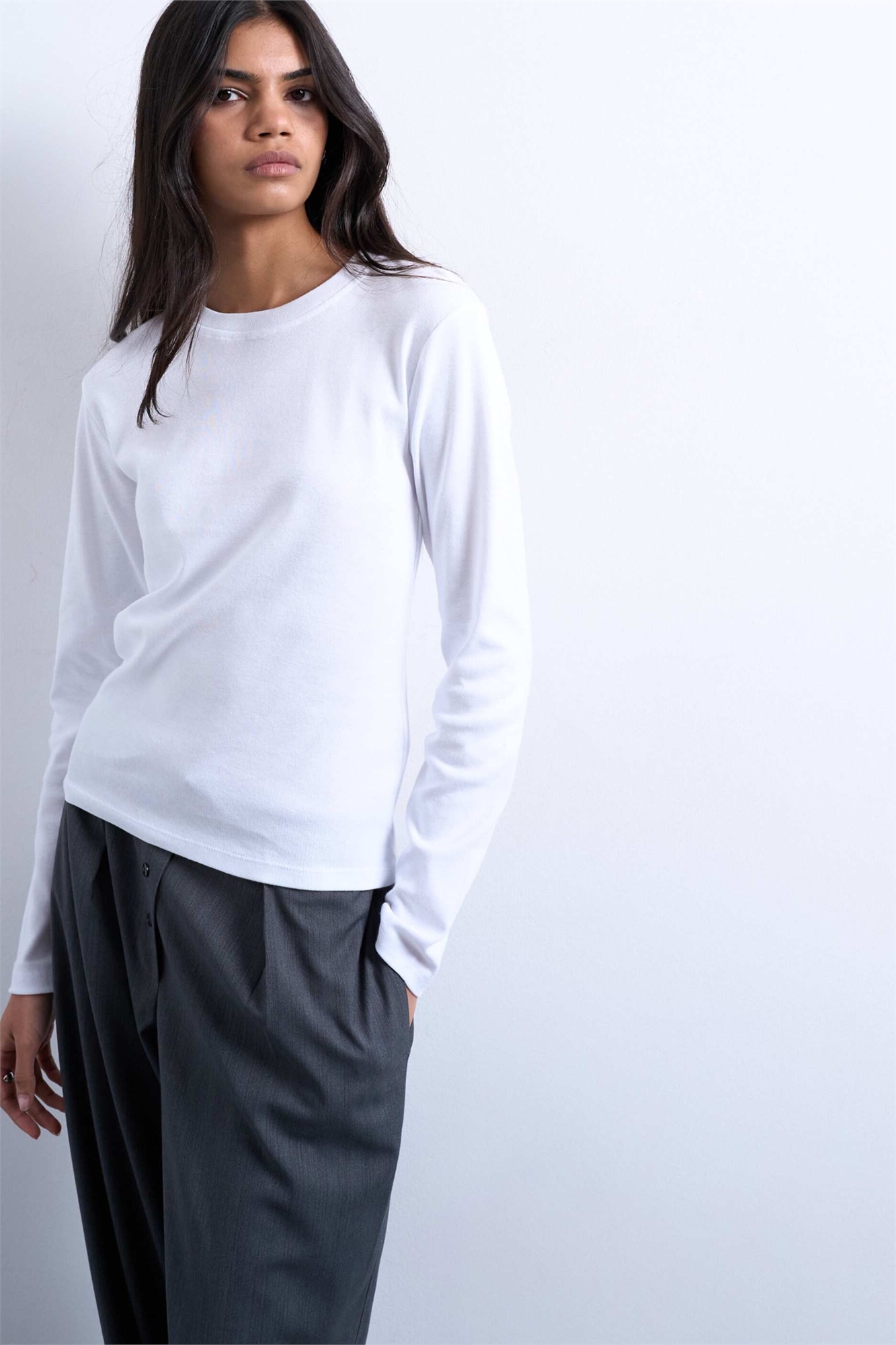 Белая футболка с длинным рукавом для повседневного ношения