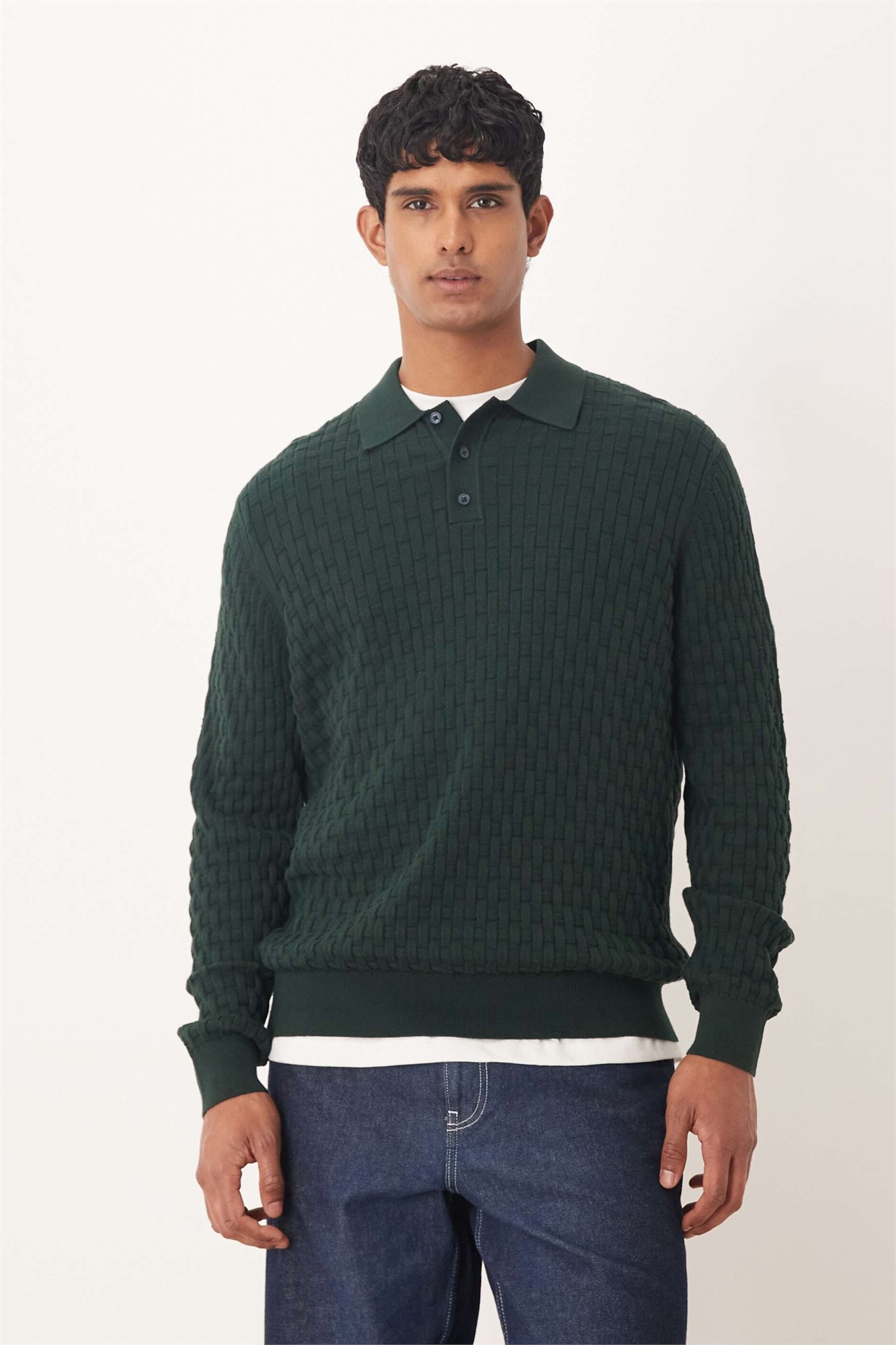 Полуформальная трикотажная рубашка-поло с длинными рукавами и фактурной текстурой