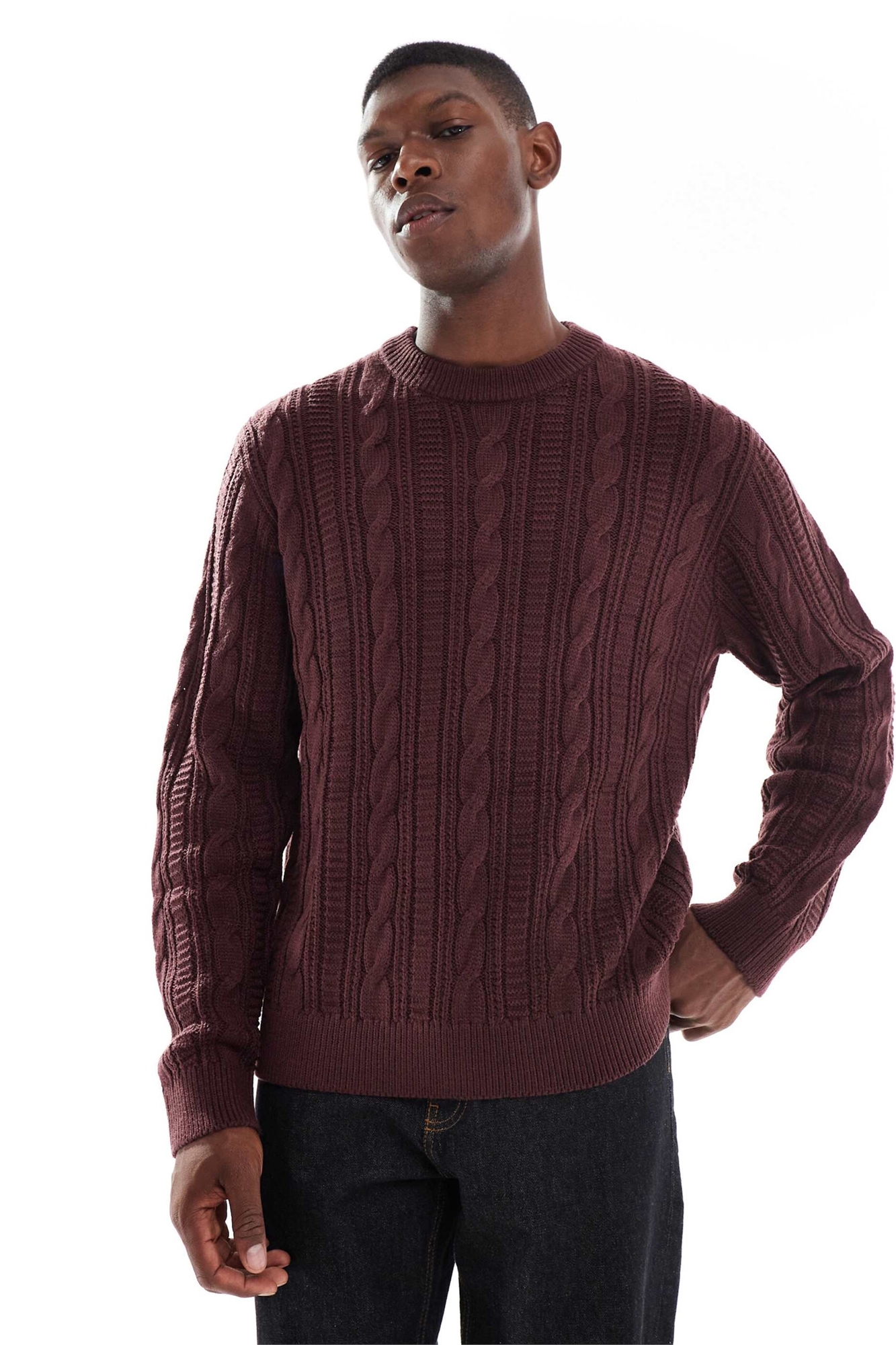 Свитер с косой вязкой