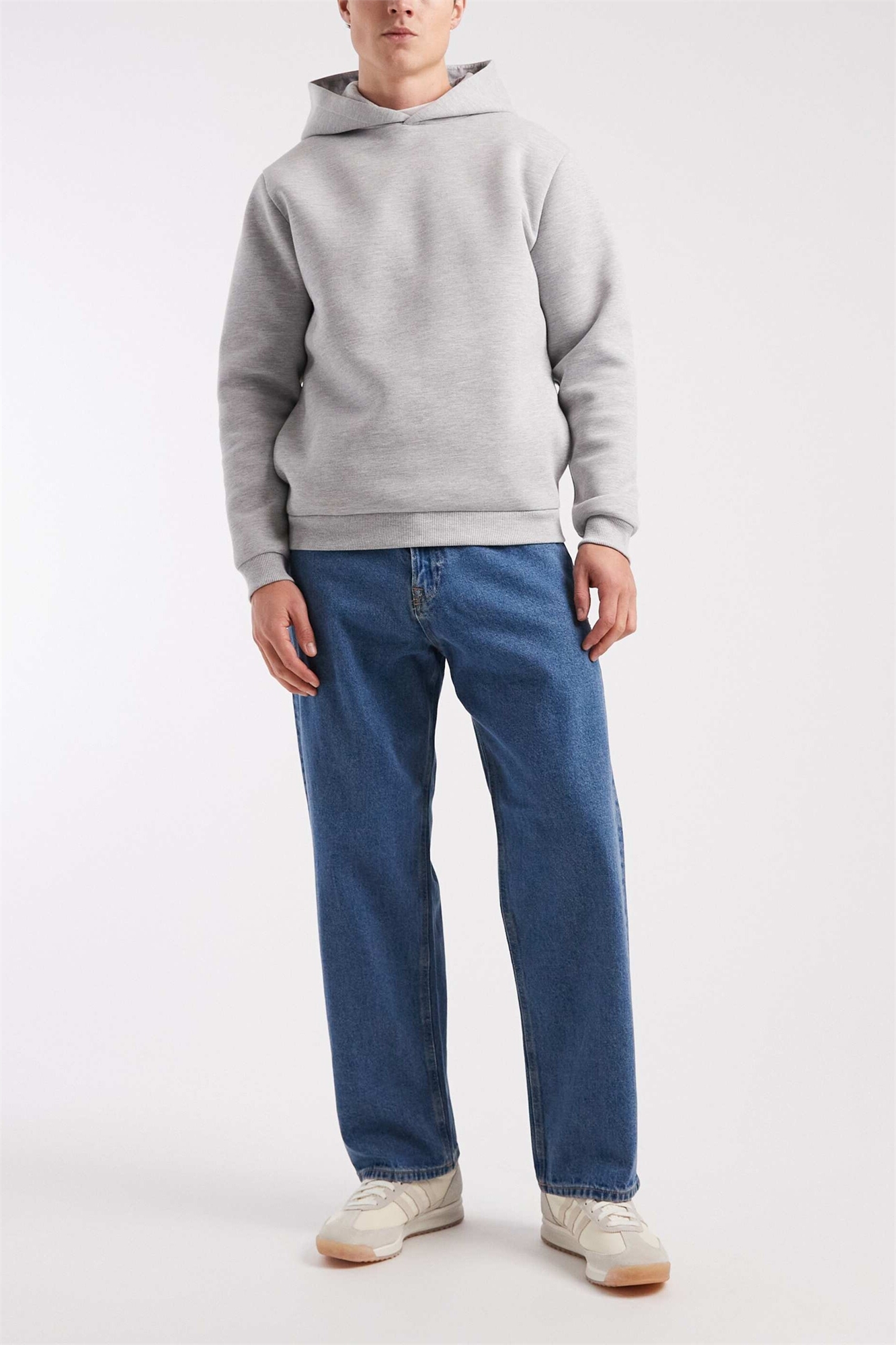 Неэластичный деним: средне-синий оттенок Основной материал: 100% хлопок.