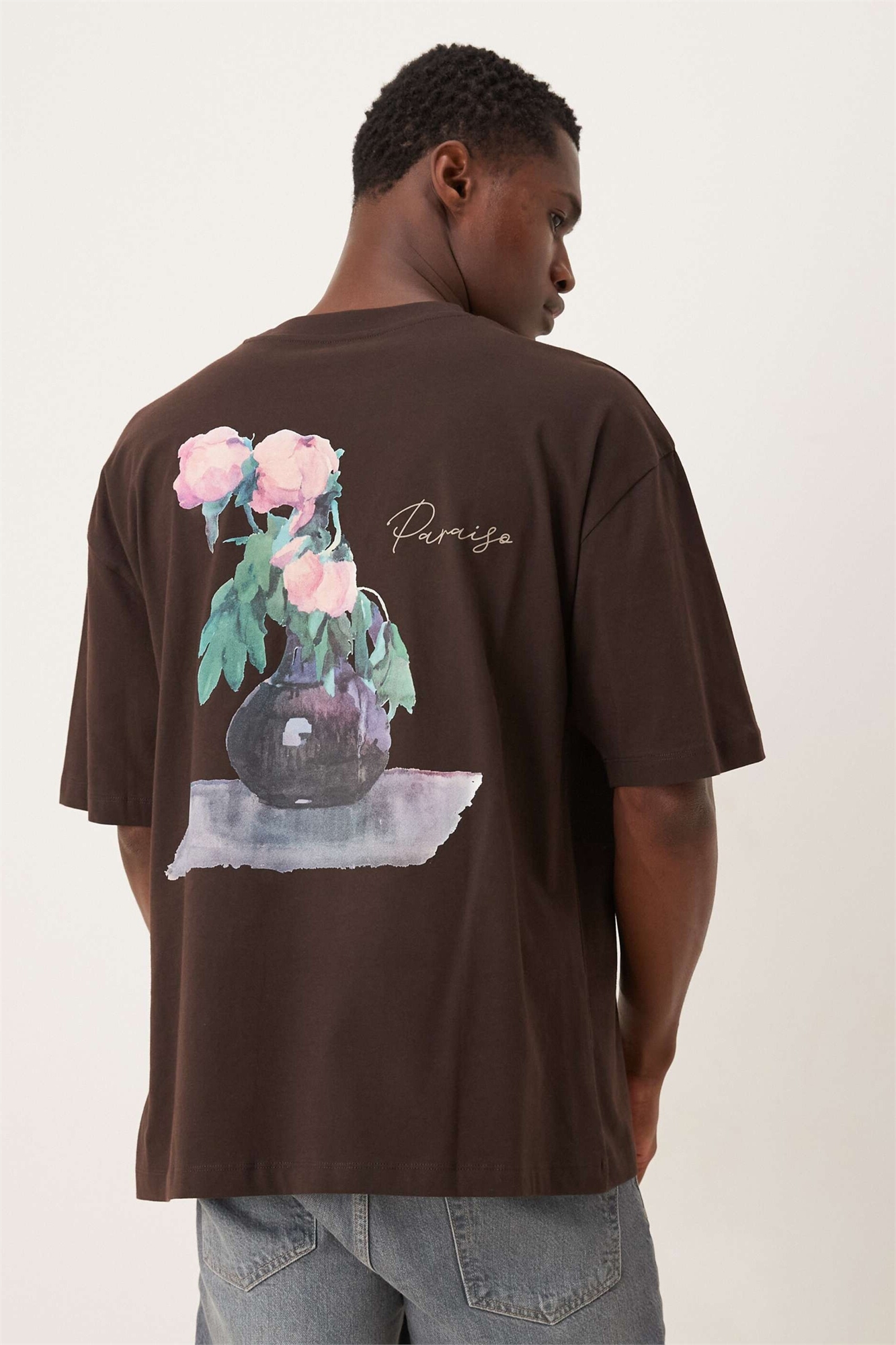 Футболка свободного кроя с нарисованным цветочным рисунком