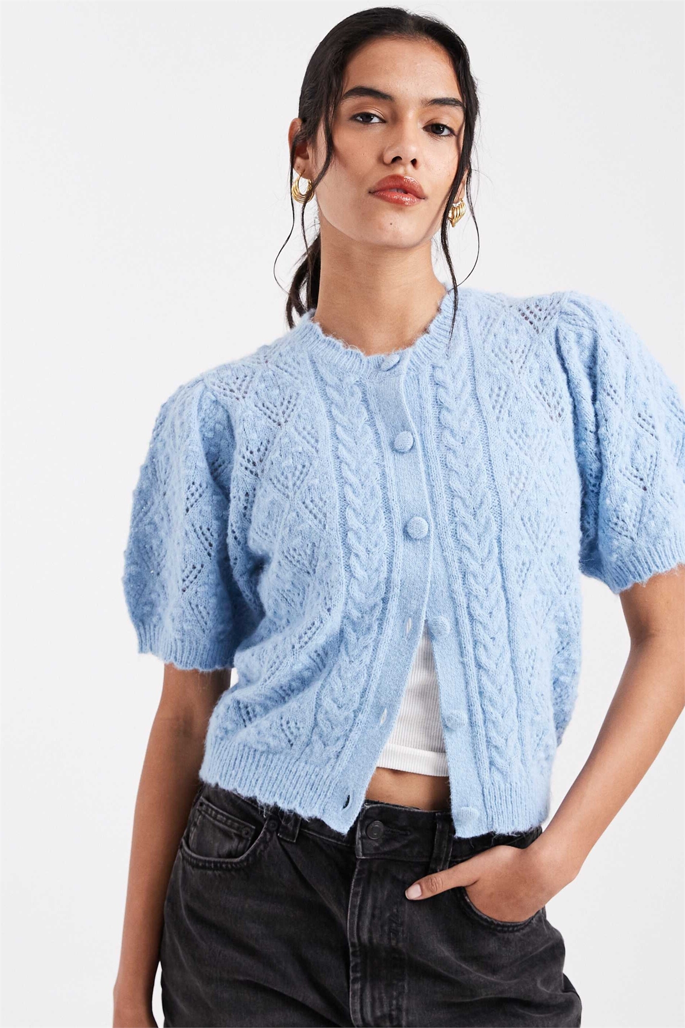 Кардиган с короткими рукавами из трикотажа «пойнтелл»