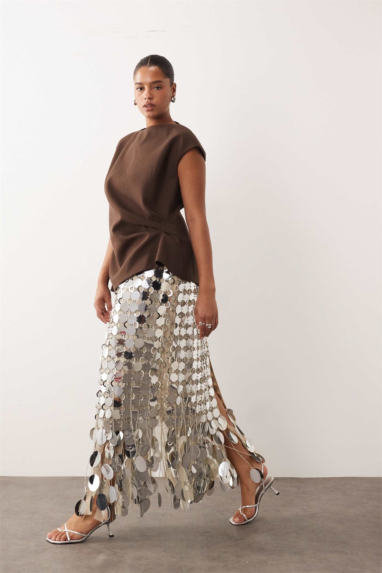 Юбка средней длины с бахромой из пайеток в стиле «Curve Futurist»
