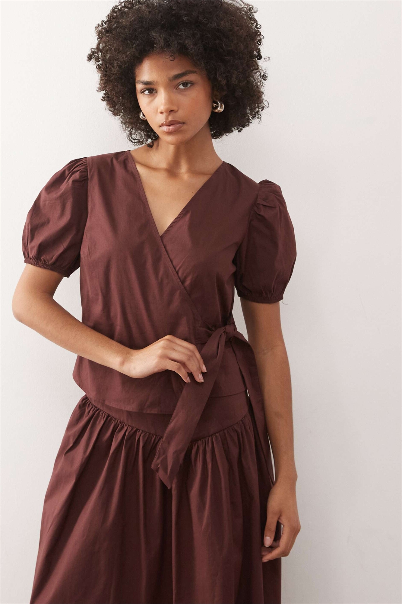 Блузка с запахом и буфетными рукавами