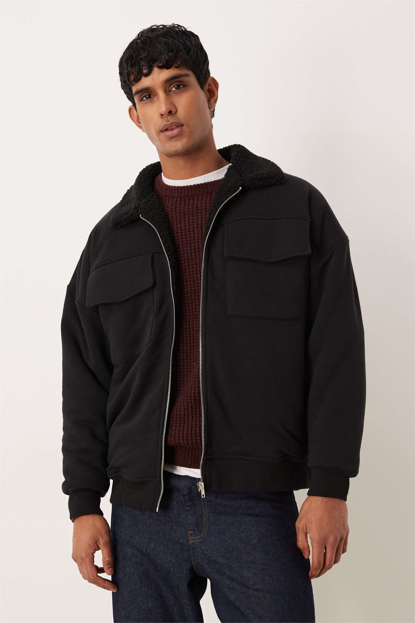 Свободная кофта на молнии с подкладкой из борж