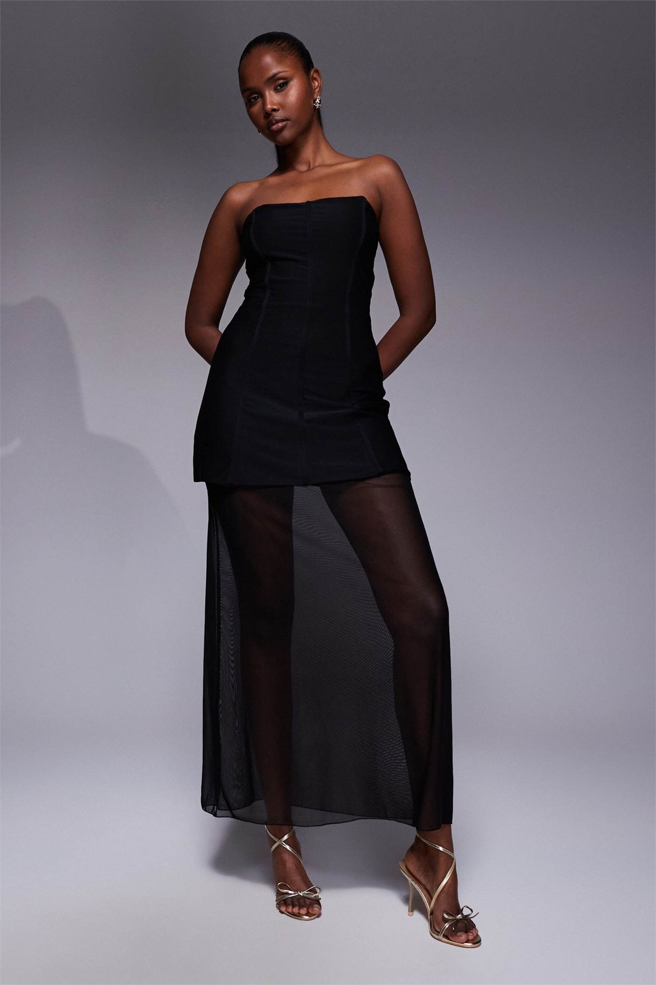 Эксклюзивное макси-платье с бандо, контрастной юбкой и прозрачным подолом