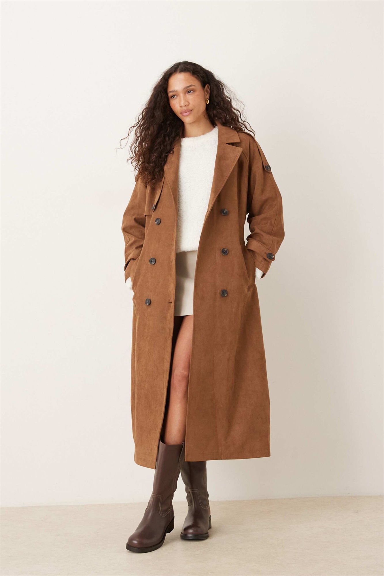 Тренч из искусственной замши