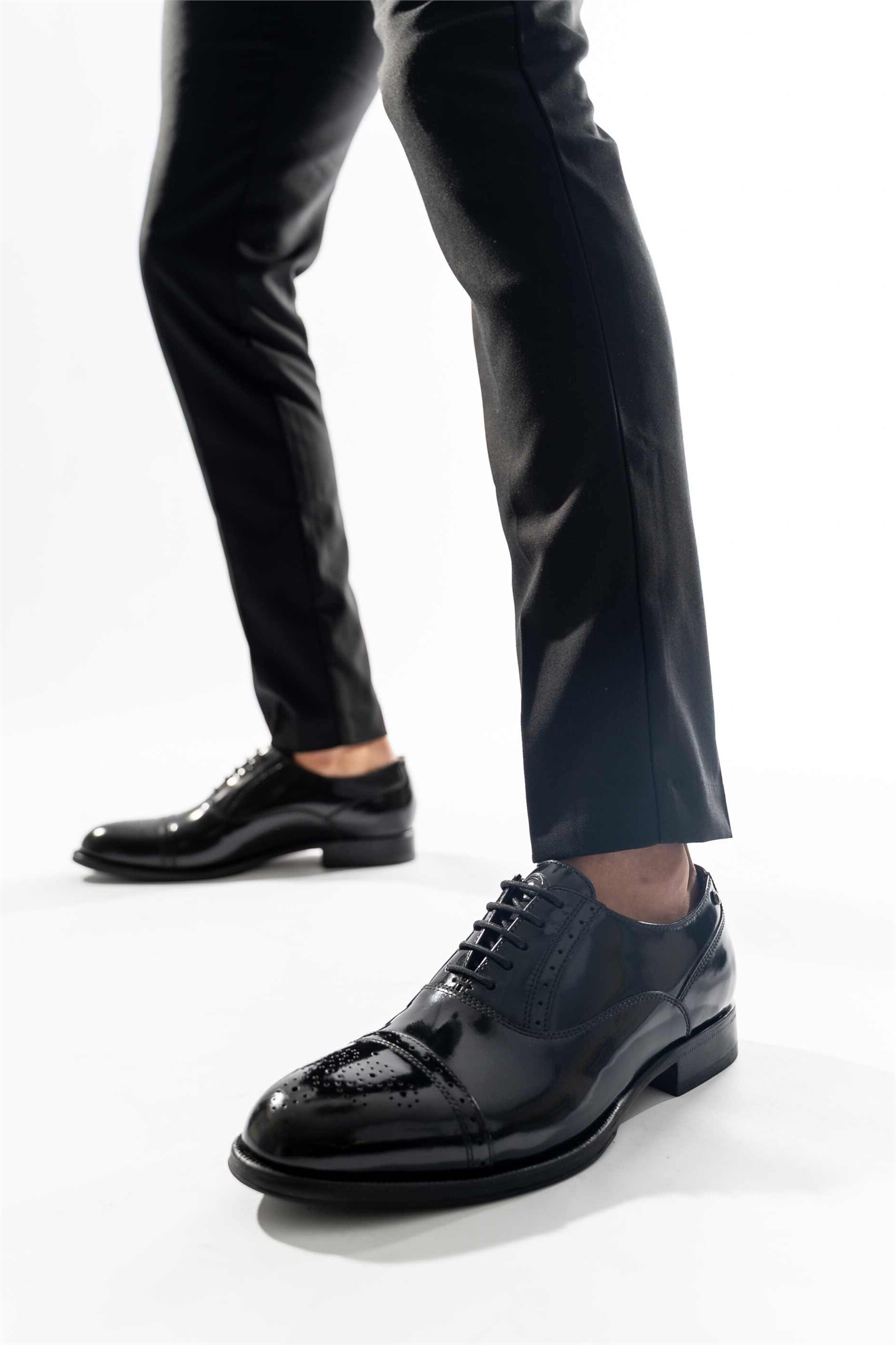 Глянцевый лакированный верх. Основной материал: 100% кожа, подошва: 100% терилен, подкладка: 100% текстиль.