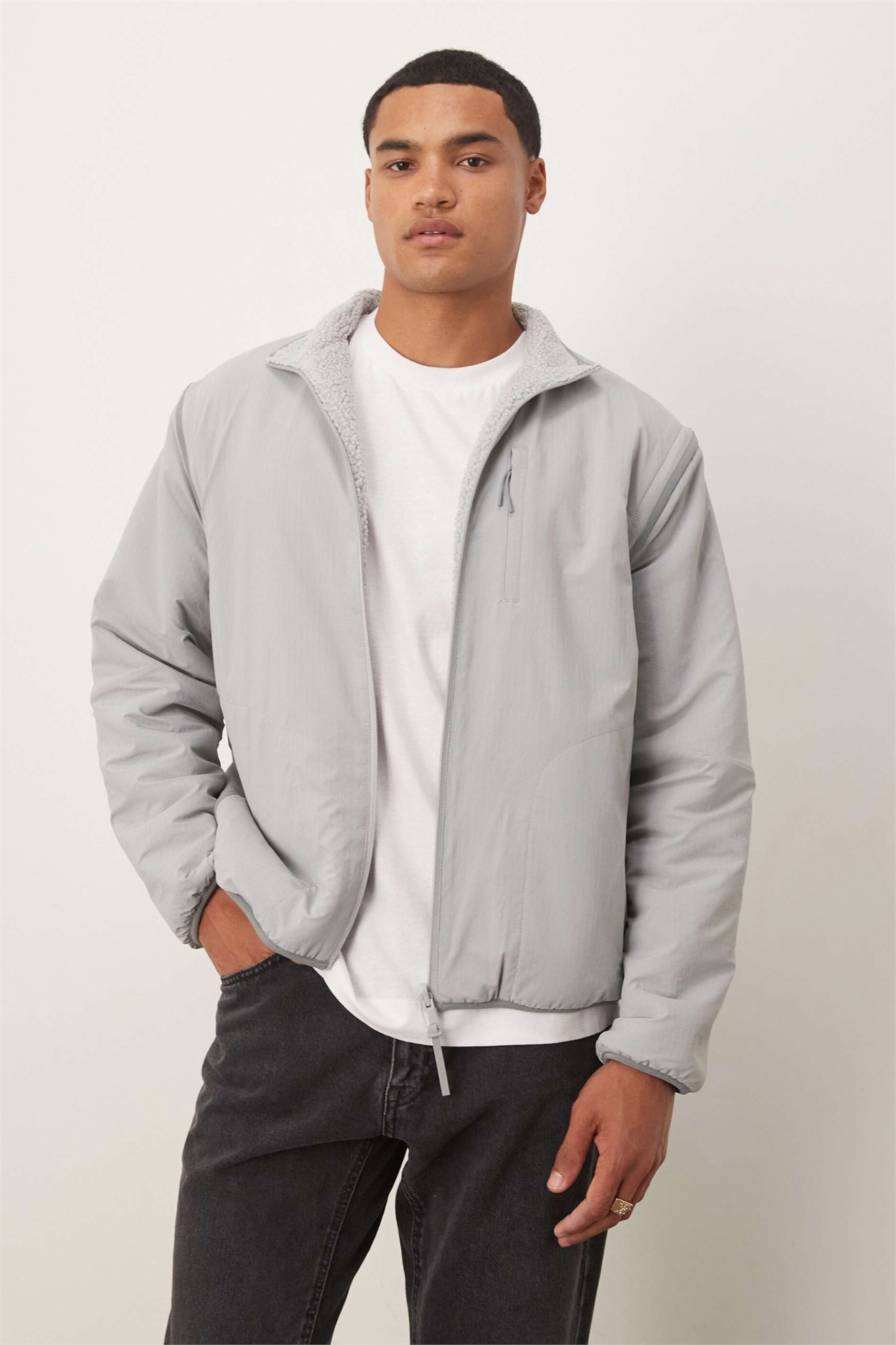Двусторонняя кофта из флиса «шерпа» со съемными рукавами