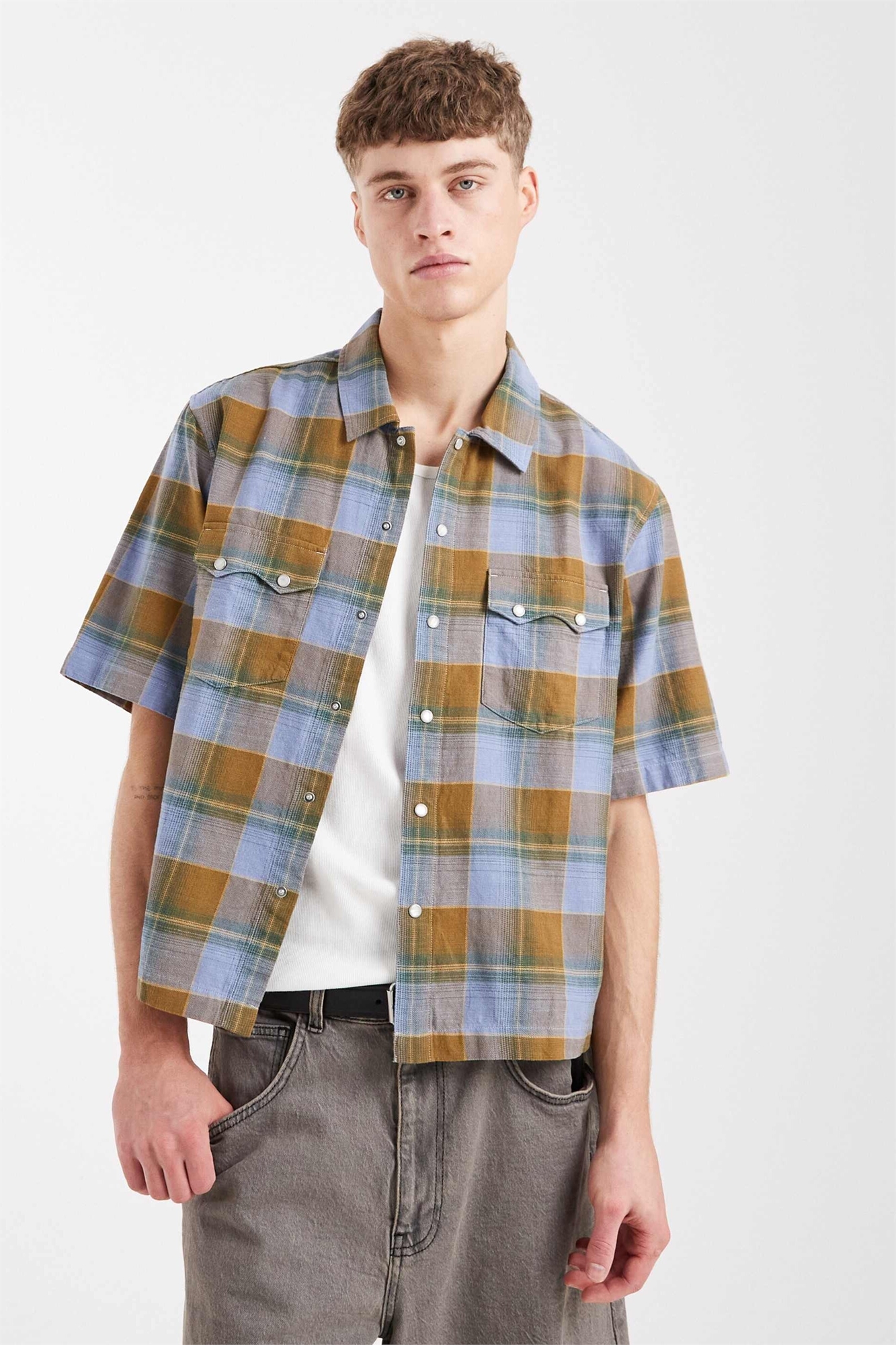 Рубашка в западном стиле прямого кроя с короткими рукавами