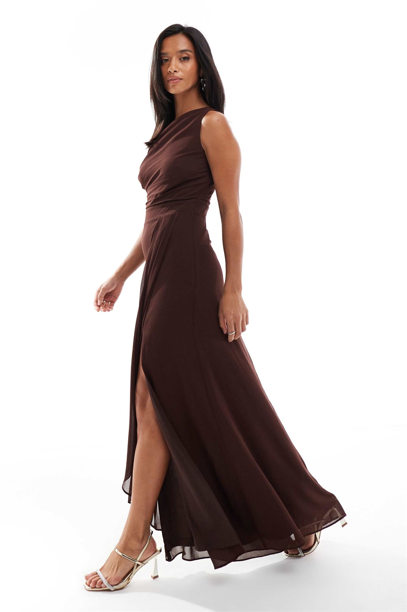 Шифоновое макси-платье для подружки невесты с юбкой-парео