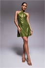 ASOS DESIGN Мини-платье с завязками на шее и пайетками по всей поверхности, модель Petite