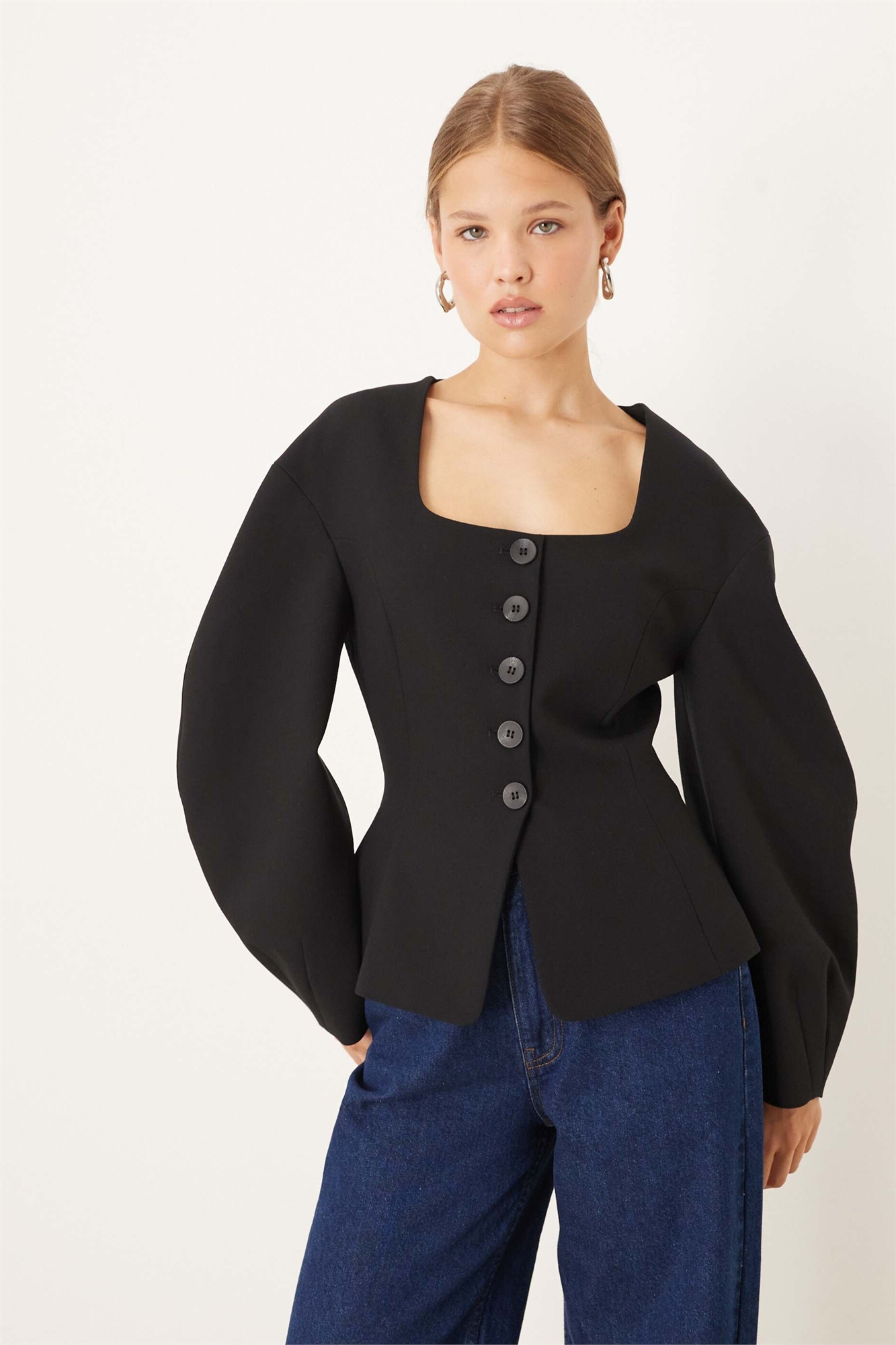 Блейзер с облегающими рукавами-коконами